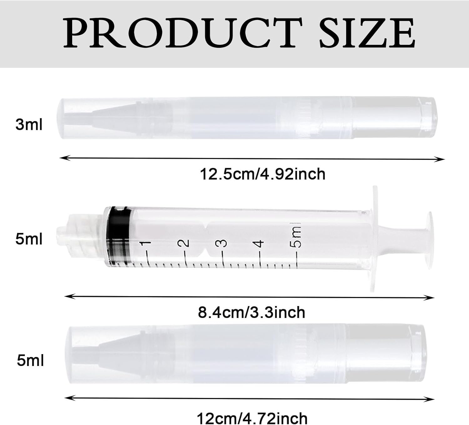 - 5 ml : environ 12,4 cm de longueur