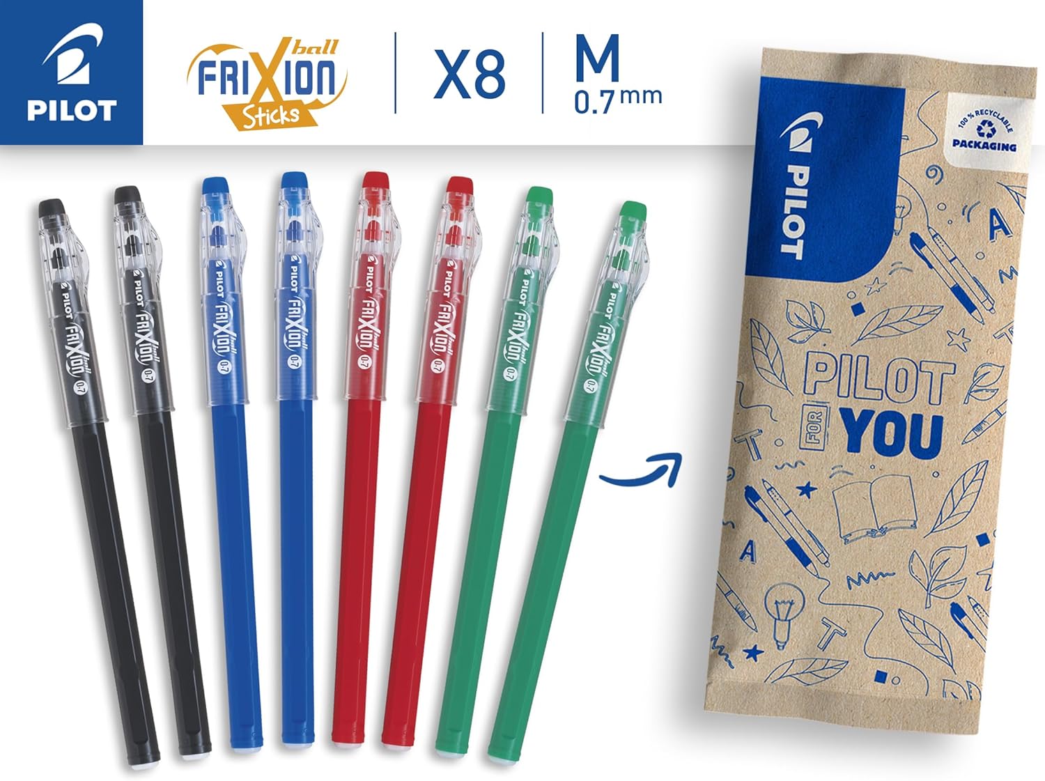 PILOT – 8 Stylos FriXion Ball Stick – Encre Gel Effaçable