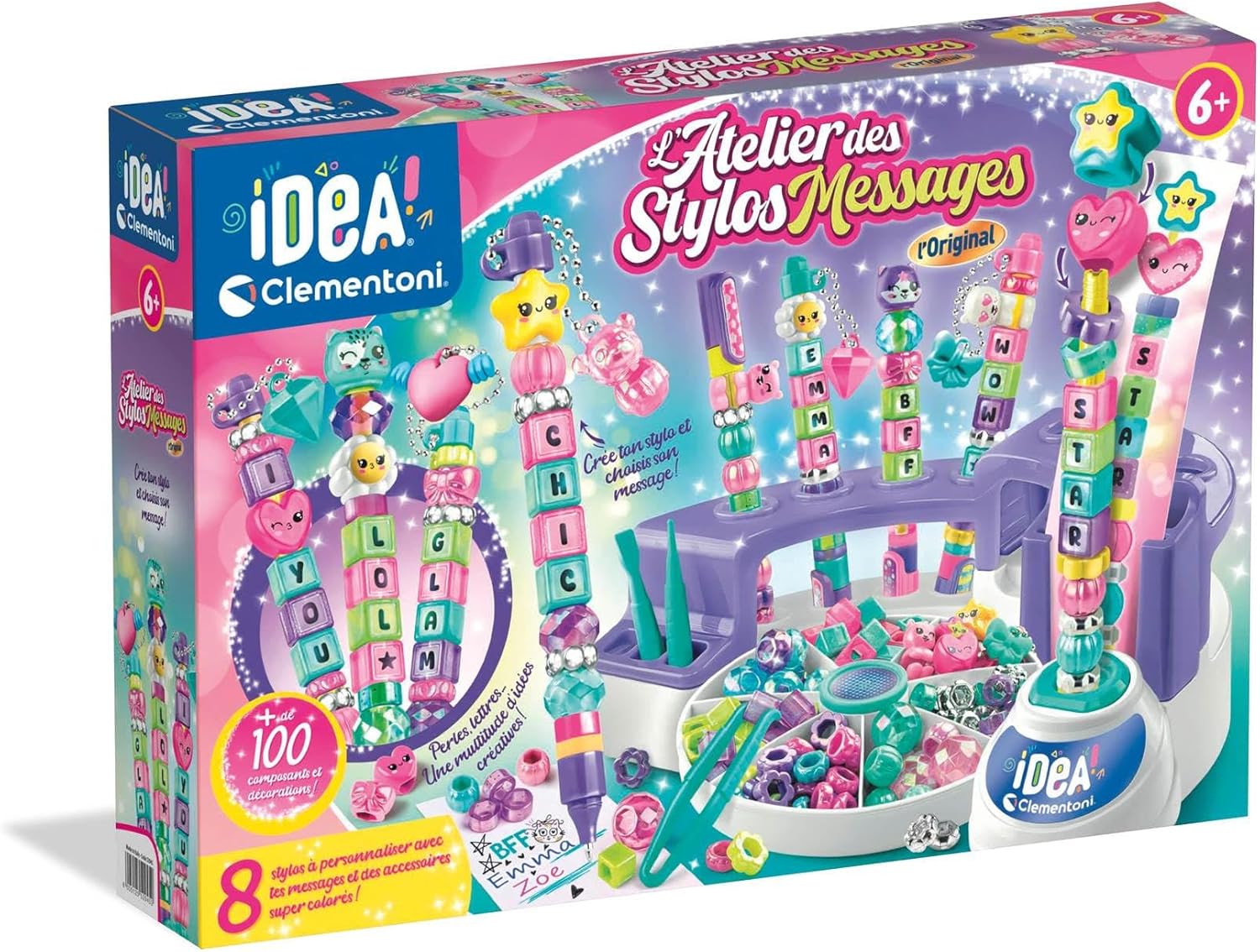 L’Atelier des Stylos – Édition Messages de Clementoni est un coffret créatif conçu pour les enfants dès 6 ans, leur offrant la possibilité de créer et personnaliser jusqu’à huit stylos uniques. Ce kit complet inclut plus de 100 accessoires variés, tels que des perles alphabet, des perles décoratives, des personnages ludiques et des autocollants colorés, permettant à chaque enfant d’exprimer sa créativité de manière originale.