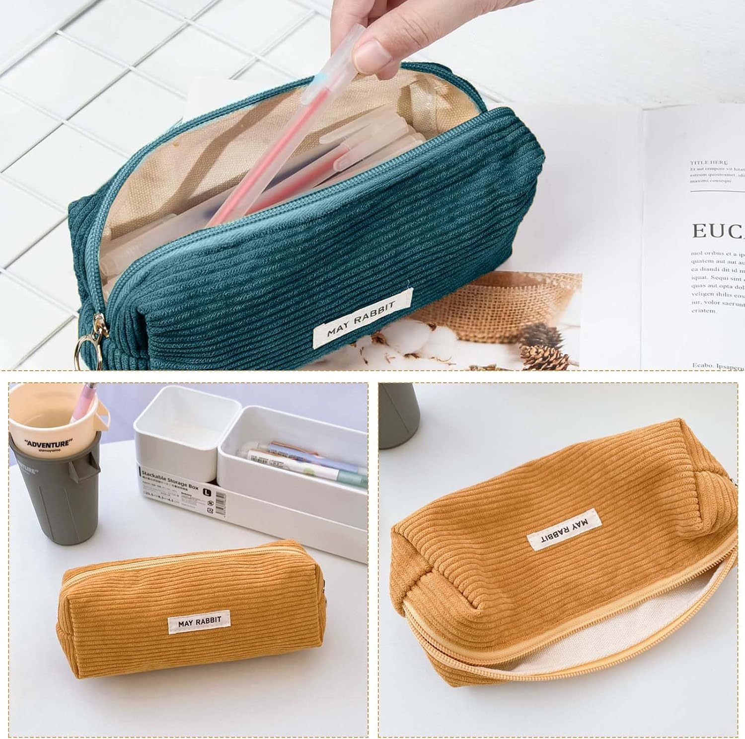 Cette trousse se distingue par son design élégant en velours côtelé, qui apporte une touche de douceur au toucher. La combinaison de couleurs vert et jaune réveille l’esprit et s’intègre facilement dans un univers créatif, que ce soit à l’école, à la maison ou en déplacement. Son aspect texturé lui confère une allure chic et décontractée, alors que la forme décontractée lui permet de s’adapter à tous vos besoins de rangement.