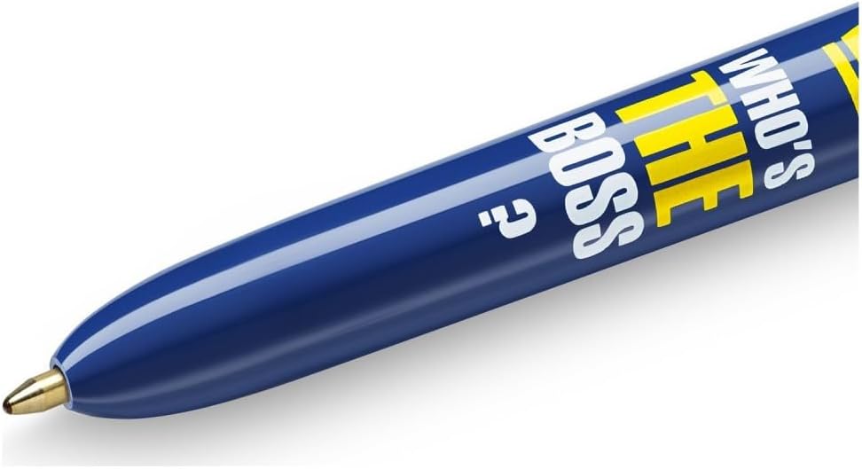 Le corps du stylo arbore le message « Who’s the Boss? », une phrase affirmant la confiance en soi et l’humour. Ce décor tendance apporte une touche de fraîcheur et d’optimisme, transformant un outil quotidien en un accessoire stylé. Disponible en plusieurs couleurs, il s’adapte aux préférences de chacun, tout en conservant une allure professionnelle.