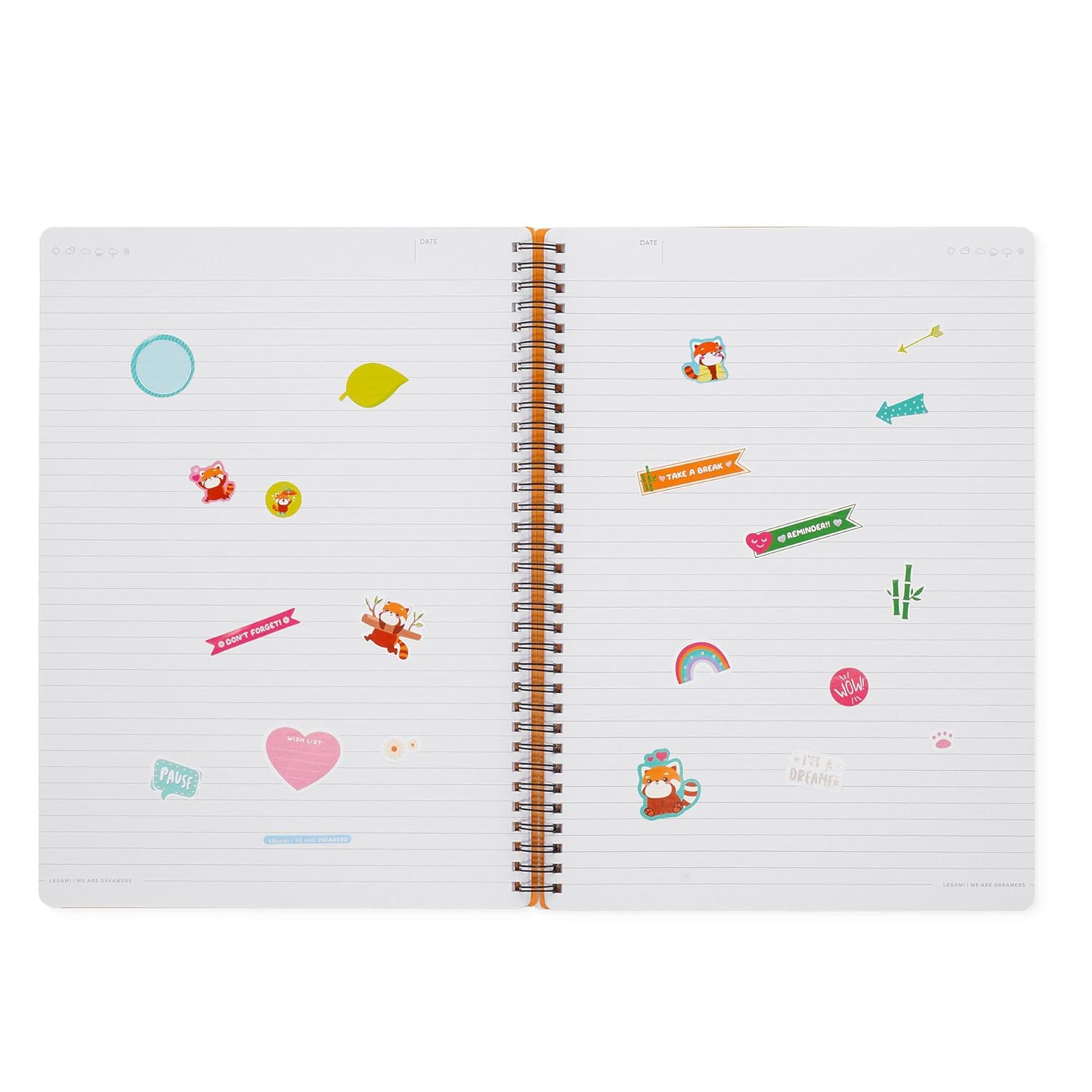 Le cahier réunit une esthétique amusante avec un design astucieux. Chaque détail compte, et les couleurs vives et les illustrations captivantes de pandas roux évoquent un monde ludique. Ces éléments visuels ne sont pas seulement attrayants, mais ils participent également à créer une atmosphère inspirante pour l’utilisateur.
