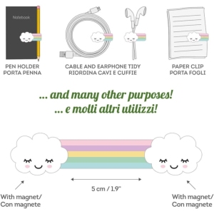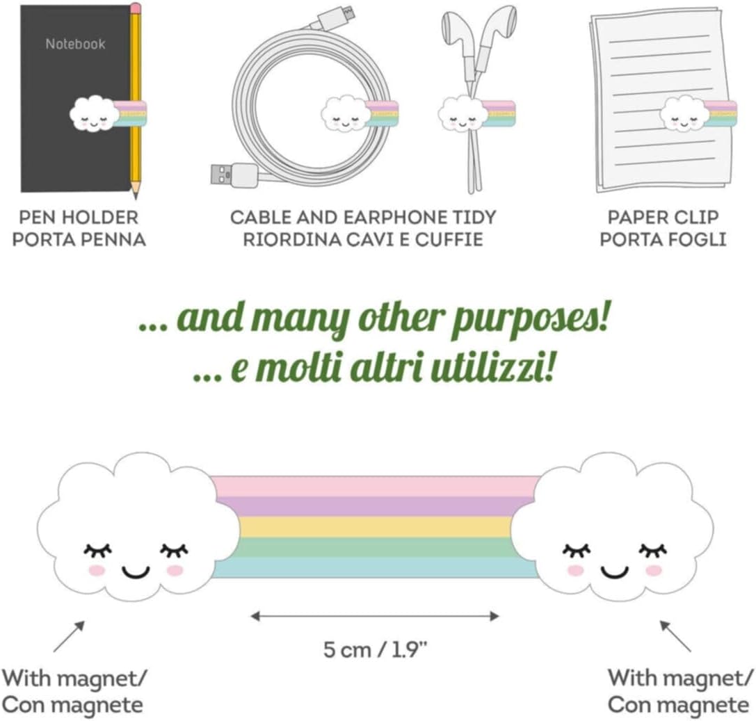 Le clip magnétique de Legami ne se contente pas d’être un accessoire fonctionnel, mais il incarne aussi un design captivant. Avec son motif arc-en-ciel, il attire le regard et ajoute une note joyeuse à n’importe quel bureau ou table de travail. Fabriqué en silicone durable, ce clip aime à s’affirmer tout en étant doux au toucher. Les extrémités magnétiques assurent une meilleure adhérence, vous permettant de fixer facilement une multitude d’objets, allant des câbles d’alimentation aux stylos, en passant par des écouteurs en désordre.