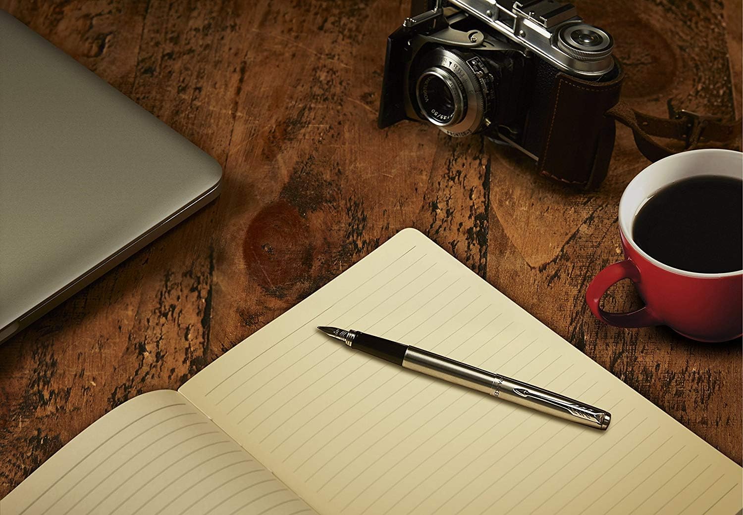 - Un stylo plume Jotter : doté d’une plume en acier inoxydable de taille moyenne, il procure une expérience d’écriture haut de gamme, appréciée des amateurs de calligraphie ou de ceux qui préfèrent une écriture plus élégante.