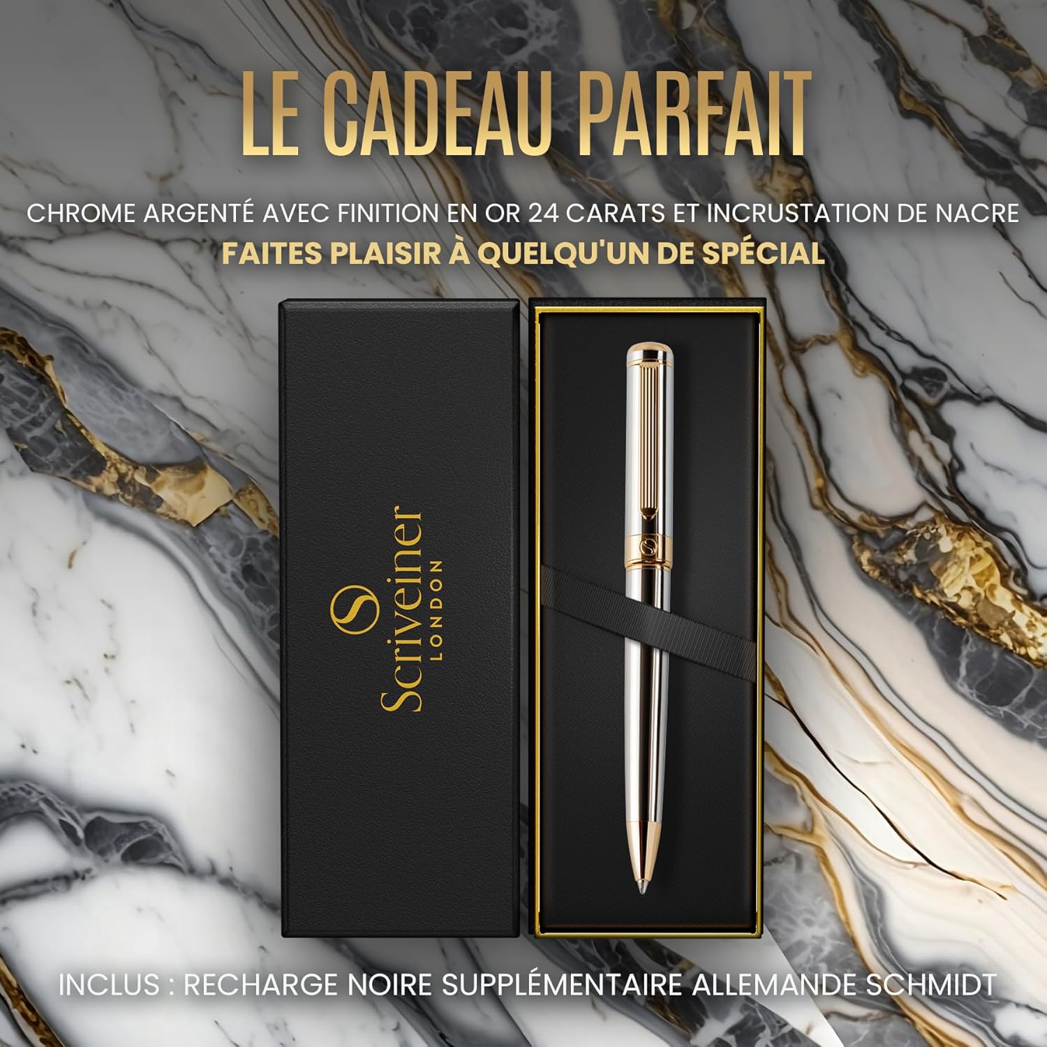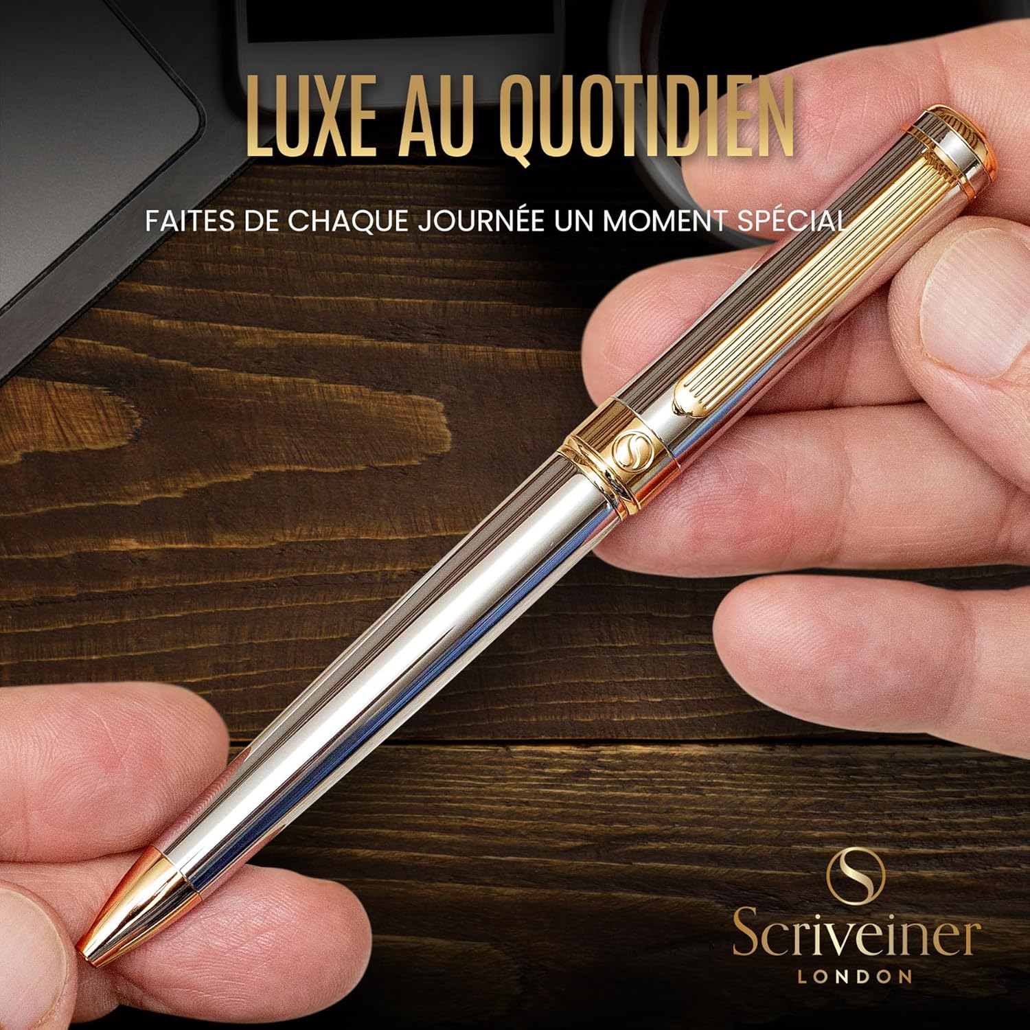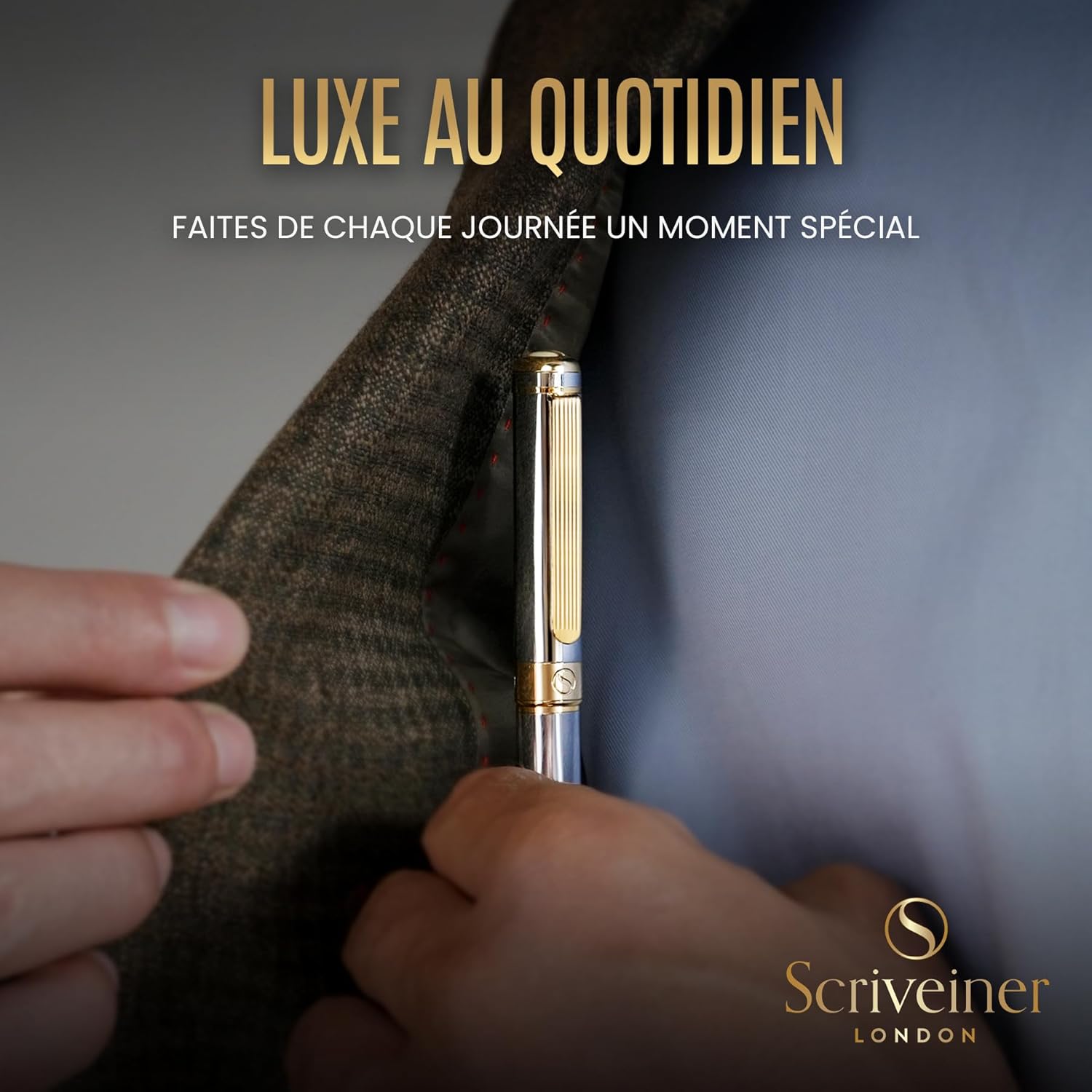 Le stylo à bille Scriveiner, avec sa finition en argent et en or véritable, incarne le mariage parfait entre esthétique, fonctionnalité et luxe. Conçu avec soin à Londres, ce stylo ne représente pas seulement un outil d’écriture, mais également un accessoire de bureau professionnel qui saura séduire tant les hommes que les femmes.