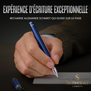 Le stylo utilise des cartouches Schmidt, connues pour leur qualité supérieure et leur fluidité d’écriture.