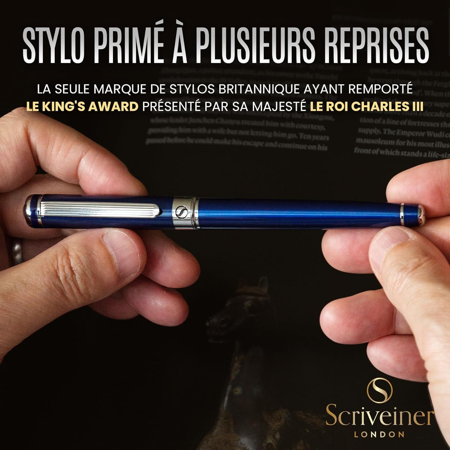 Découvrez l’exceptionnel stylo roller Scriveiner Midnight Blue, un chef-d’œuvre de la marque britannique Scriveiner. À la croisée de l’artisanat haut de gamme et du design élégant, ce stylo se distingue non seulement par son apparence mais aussi par son expérience d’écriture inégalée. Sa finition en bleu nuit laqué, associée à des accents en acier chromé, en fait un accessoire de bureau aussi esthétique qu’efficace.