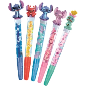 Le coffret permet de créer jusqu’à cinq stylos personnalisés, chacun inspiré des couleurs et du style de Stitch et de ses amis.