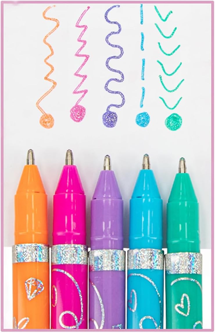 Les cinq couleurs incluses dans ce set – orange, rose, violet, bleu et vert – sont enrichies de paillettes métalliques qui apportent une brillance et une profondeur exceptionnelles aux dessins et aux écritures. Ces teintes vives et lumineuses permettent de créer des œuvres d’art éclatantes, que ce soit pour colorier, écrire ou décorer.