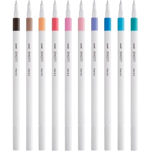 Avec les feutres Emott, l’art de l’écriture et du dessin se transforme en une expérience créative unique. Conçus par Uni Mitsubishi Pencil, ces feutres à pointe fine de 0,4 mm offrent une palette de dix couleurs pastel vibrantes : ultra violet, vert, corail, gris, rose bonbon, saumon, rose clair, beige, bleu clair et bleu ciel. Leur design élégant et minimaliste attire l’attention tout en offrant un confort d’utilisation inégalé. Chaque feutre est un outil parfait pour donner libre cours à votre créativité, que vous soyez écrivain, artiste en herbe ou professionnel.