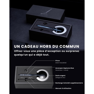 L’Hoverpen Interstellar de la marque novium incarne une fusion remarquable entre esthétique futuriste et fonctionnalité. Présenté dans une couleur inspirée de Neptune, ce stylo à bille de luxe ne laisse personne indifférent. Son design, conçu à partir d’aluminium de qualité aéronautique et d’alliage de zinc, élève chaque écriture à un niveau d’élégance inégalé. Le stylo flotte à un angle de 23,5°, une référence subtile à l’inclinaison de l’axe terrestre, créant une expérience visuelle captivante qui attire immédiatement le regard.
