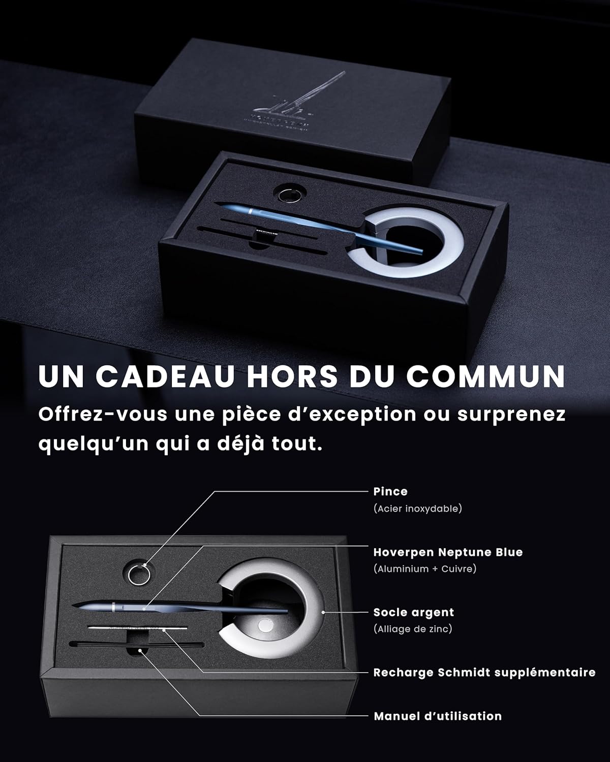 L’Hoverpen n’est pas qu’un simple outil d’écriture ; c’est une œuvre d’art à part entière. Fabriqué avec des matériaux durables, il promet une longévité exceptionnelle, conçu pour résister à l’épreuve du temps sans compromettre son élégance. En le plaçant sur son socle magnétique, vous pouvez également observer un mouvement fascinant, ajoutant une dimension interactive à votre espace de travail. Ce stylo n’est pas seulement un instrument, c’est un objet qui stimule la créativité tout en apportant une touche futuriste à votre bureau.