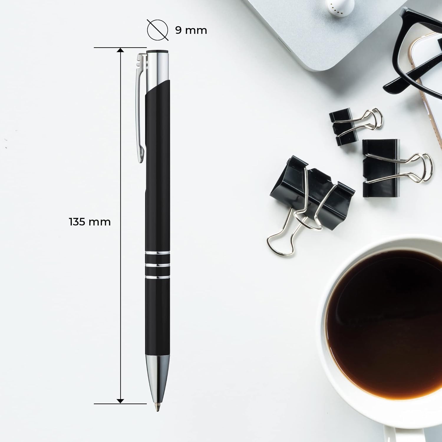 Le lot de 10 stylos à bille métallique GIMEI présente un design chromé brillant qui confère une allure professionnelle et moderne. Chaque stylo est équipé d’un clip en métal argenté, permettant de le fixer aisément à un carnet, une chemise ou une poche, assurant ainsi une accessibilité rapide. La recharge en plastique remplaçable de grande capacité garantit une utilisation prolongée, réduisant le besoin de remplacements fréquents.