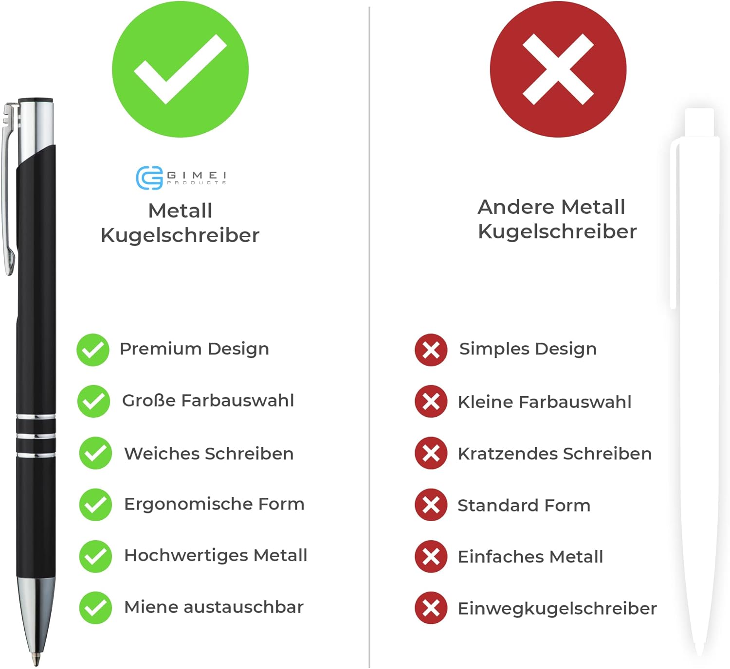 Sur le marché, plusieurs stylos à bille métalliques sont disponibles. Par exemple, le BIC Cristal Original est un modèle emblématique, apprécié pour sa fiabilité et son prix abordable. Cependant, il est principalement en plastique et offre une expérience d’écriture différente. Le lot de 10 stylos à bille métallique GIMEI se distingue par son corps en métal, offrant une sensation de poids et de solidité supérieure, ainsi qu’un design plus raffiné.