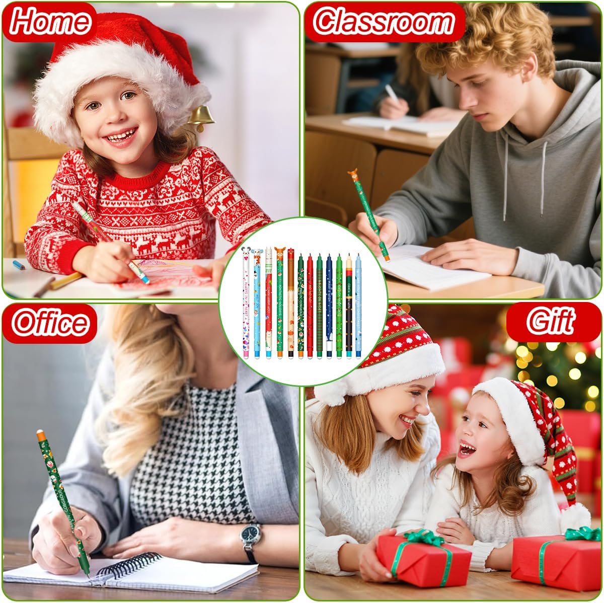 Chaque stylo est orné d’un motif attrayant, inspiré de l’esprit de Noël, et comprend une variété de couleurs vibrantes qui rendent vos écrits plus ludiques et visuellement plaisants. Les thèmes cartoon ajoutent une touche de convivialité, rendant chaque session d’écriture plus joyeuse. Cet ensemble est parfait pour tous ceux qui souhaitent ajouter de la couleur à leurs notes ou à leurs dessins, tout en restant pratique.