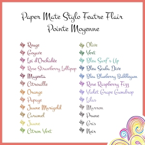 - Marie C. : « Les Paper Mate Flair sont mes favoris pour le scrapbooking. La pointe est parfaite pour dessiner des détails et l’encre ne traverse pas le papier. »