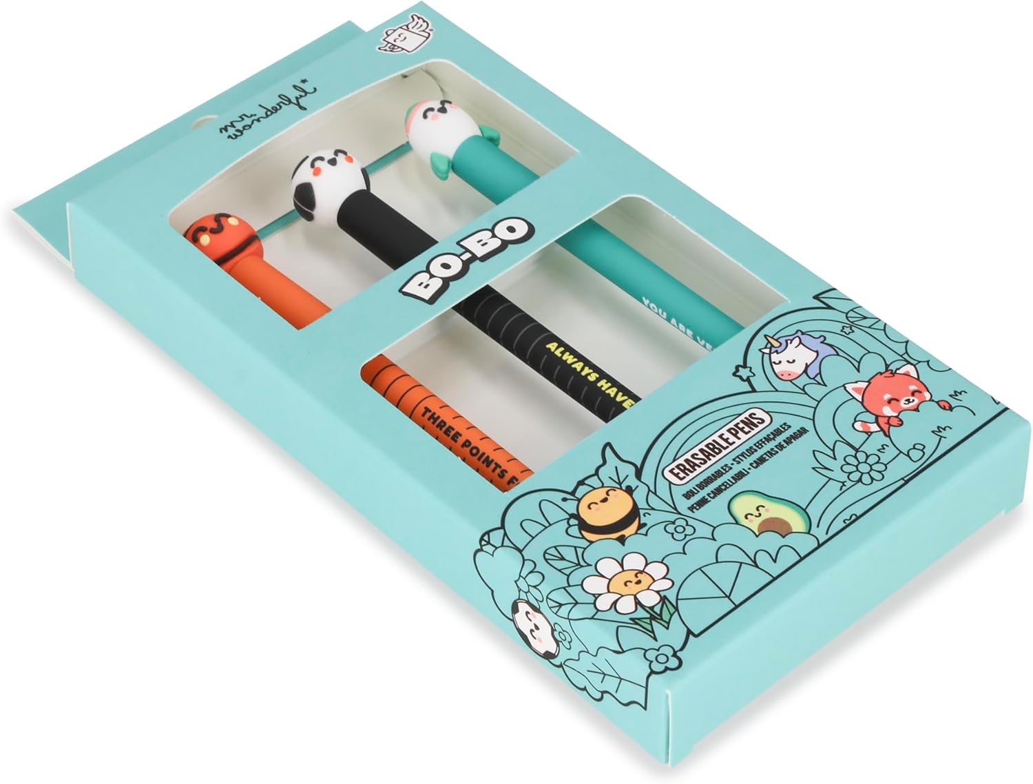 Les stylos effaçables Bo-Bo de Mr. Wonderful sont une excellente addition à votre trousse. Ils combinent design attrayant, messages positifs et fonctionnalité efficace, rendant chaque moment d’écriture plus agréable. Que ce soit pour le travail, les études ou les loisirs, ces stylos apportent une touche de bonne humeur et de motivation.