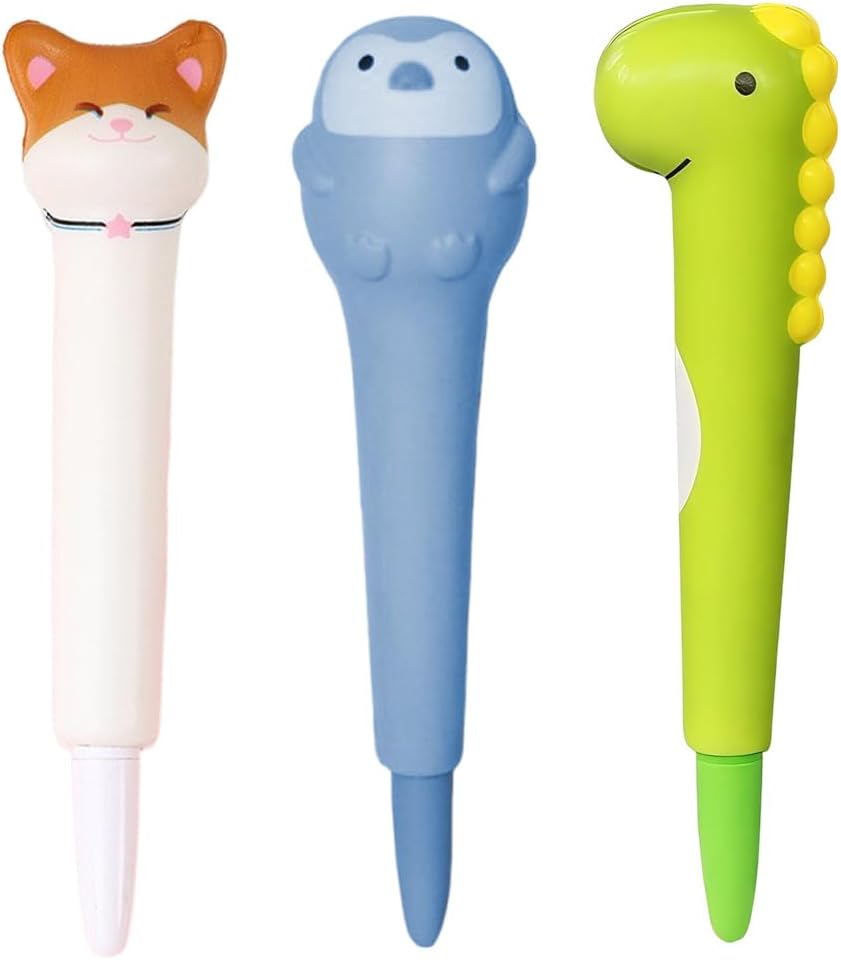 Le set de trois stylos gel anti-stress CEJAS est l’accessoire parfait pour allier détente et créativité. Avec des designs adorables représentant un dinosaure vert, un chat jaune coiffé d’un chapeau, et un pingouin bleu, ces stylos apportent une touche ludique à votre espace de travail ou d’étude. Mesurant 18 cm de long et dotés d’une mine de 0,5 mm, ils allient plaisir et praticité, satisfaisant ainsi les petits comme les grands.