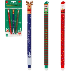 Ce lot de trois stylos gel effaçables se distingue par ses couleurs festives de Noël : rouge, bleu et vert. Ces teintes vives apportent une touche de gaieté à vos écrits et dessins, rendant chaque utilisation plus agréable. Que ce soit pour rédiger des cartes de vœux, des listes de cadeaux ou des notes de service, ces stylos ajoutent une dimension festive à vos tâches quotidiennes.