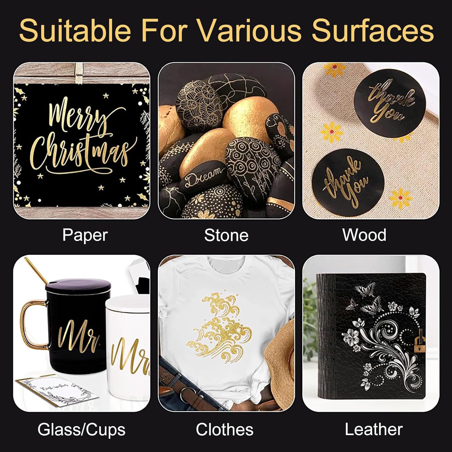 Chacun des marqueurs de ce lot s’adapte à des projets variés. Que vous souhaitiez embellir une pierre, personnaliser un vase en céramique ou ajouter une touche spéciale à vos vêtements, ces stylos acryliques répondent à toutes vos exigences. Les couleurs métalliques ajoutent un effet brillant qui peut être particulièrement frappant sur des occasions festives, comme la décoration de Noël ou des projets d’art créatif.