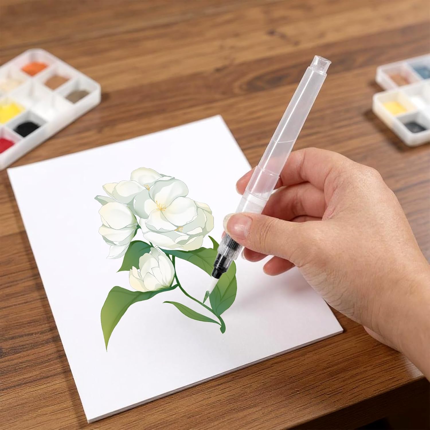 L’un des atouts majeurs de ces pinceaux est leur facilité d’utilisation. Remplir le réservoir est simple : il suffit de dévisser la tige, d’ajouter de l’eau ou des encres aquarelles, puis de revisser. Le débit est ajustable en appuyant sur la tige, ce qui vous permet de maîtriser la quantité de liquide libérée en temps réel. Une petite note à garder en tête : veillez à ne pas dépasser 2/3 de la capacité du réservoir afin d’éviter tout débordement.