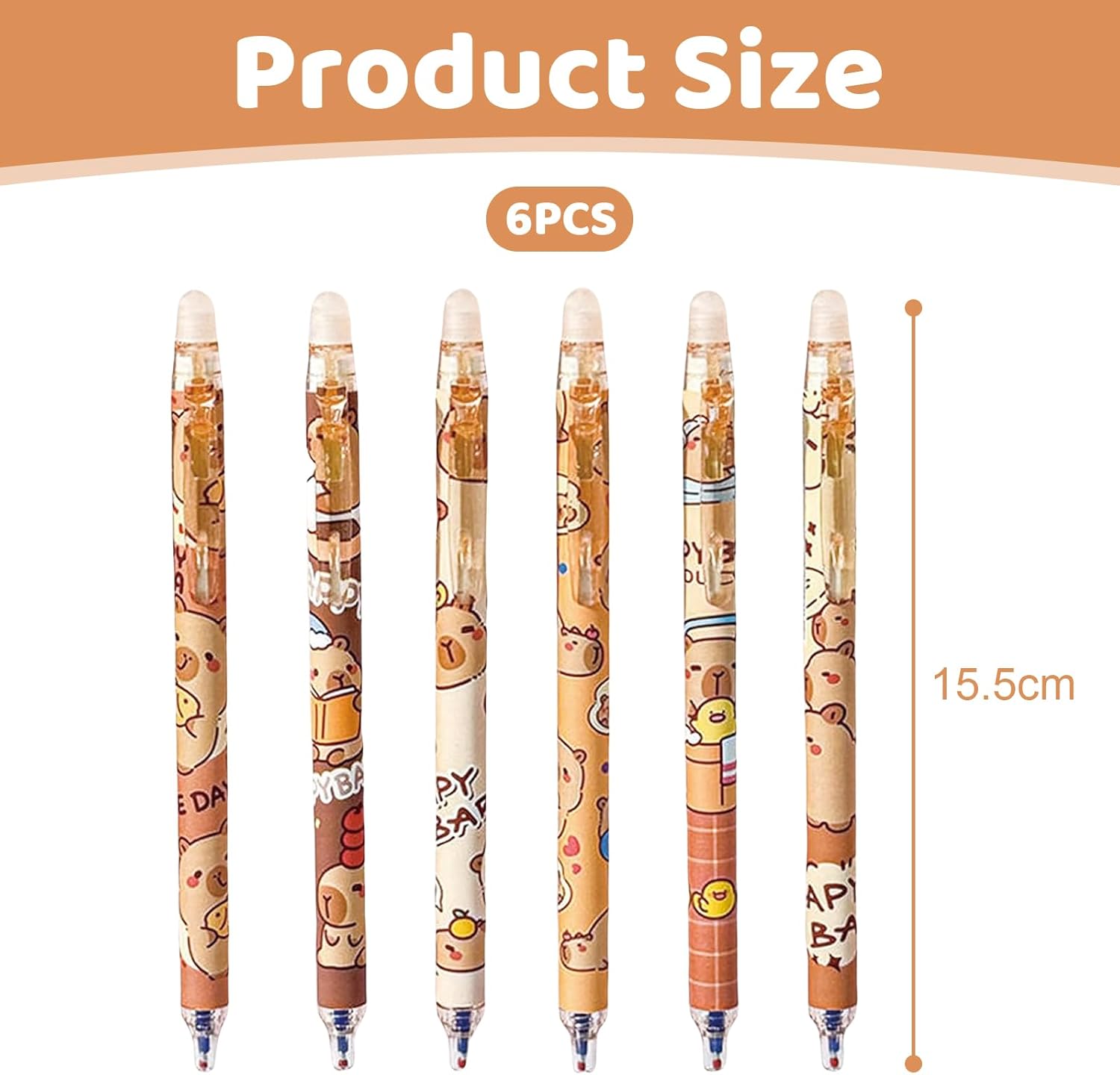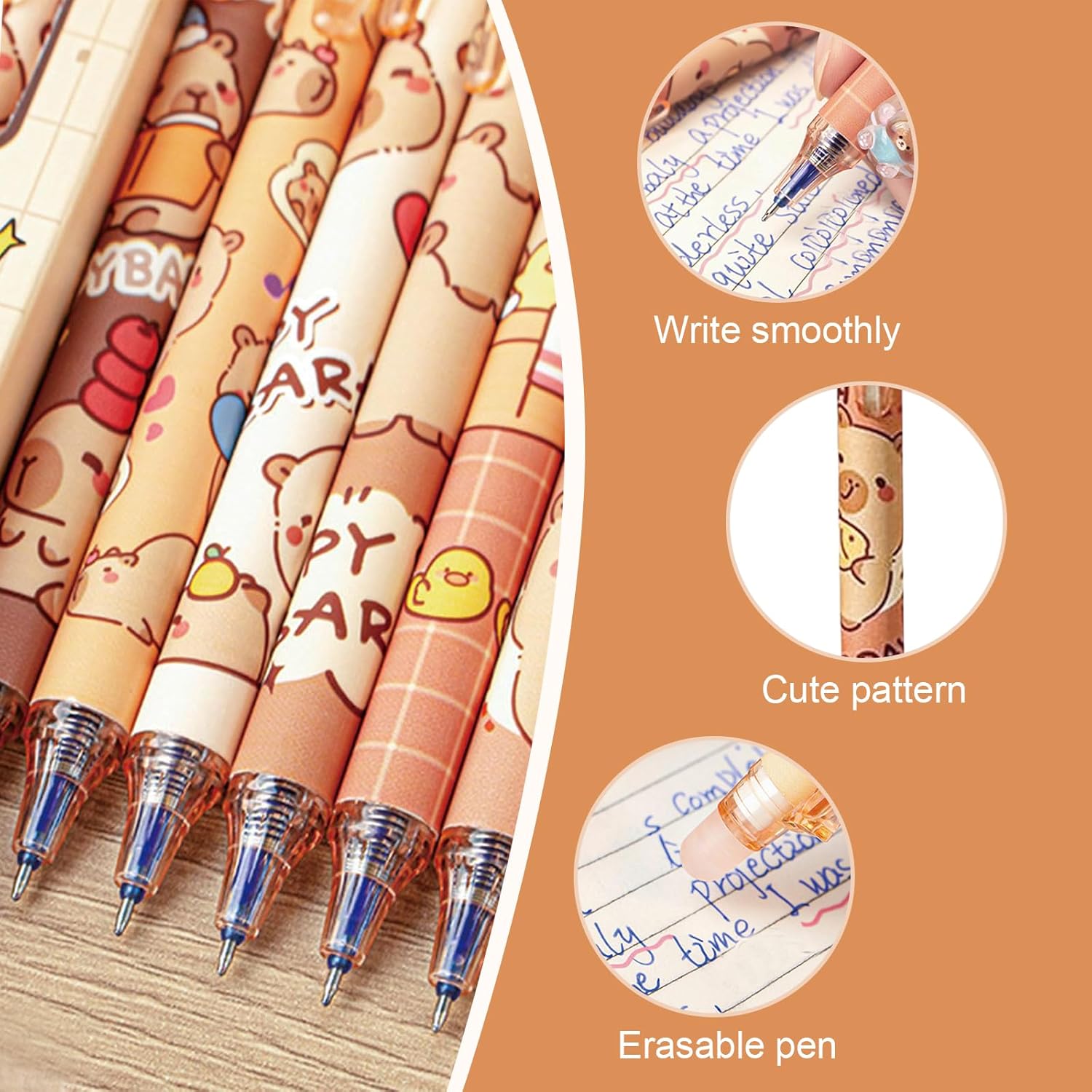 Ces stylos gel sont ornés de motifs mignons de capybara en dessin animé, ce qui les rend irrésistibles pour les fans de ces animaux adorables. Que vous soyez une femme, une fille ou un garçon, ces stylos colorés apporteront une touche de gaieté à votre trousse. Avec leurs styles variés, chaque stylo est une petite œuvre d’art qui fait sourire à chaque utilisation. Ils ne se contentent pas de remplir une fonction utilitaire ; ils ajoutent également une dimension joyeuse à votre expérience d’écriture.