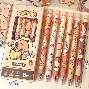 Perfect pens for the Capybara fan in your family.They write well, no skipping. Erase completely, no marks or spots left behind.Grandson loves them (so do I) :)Great value for the cost.