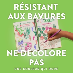 L’encre à base d’eau est résistante aux bavures et ne traverse pas le papier, assurant des pages propres et nettes. Elle est disponible en 32 couleurs vives, permettant de personnaliser vos créations selon vos envies. Le séchage rapide de l’encre évite les bavures, même pour les gauchers.
