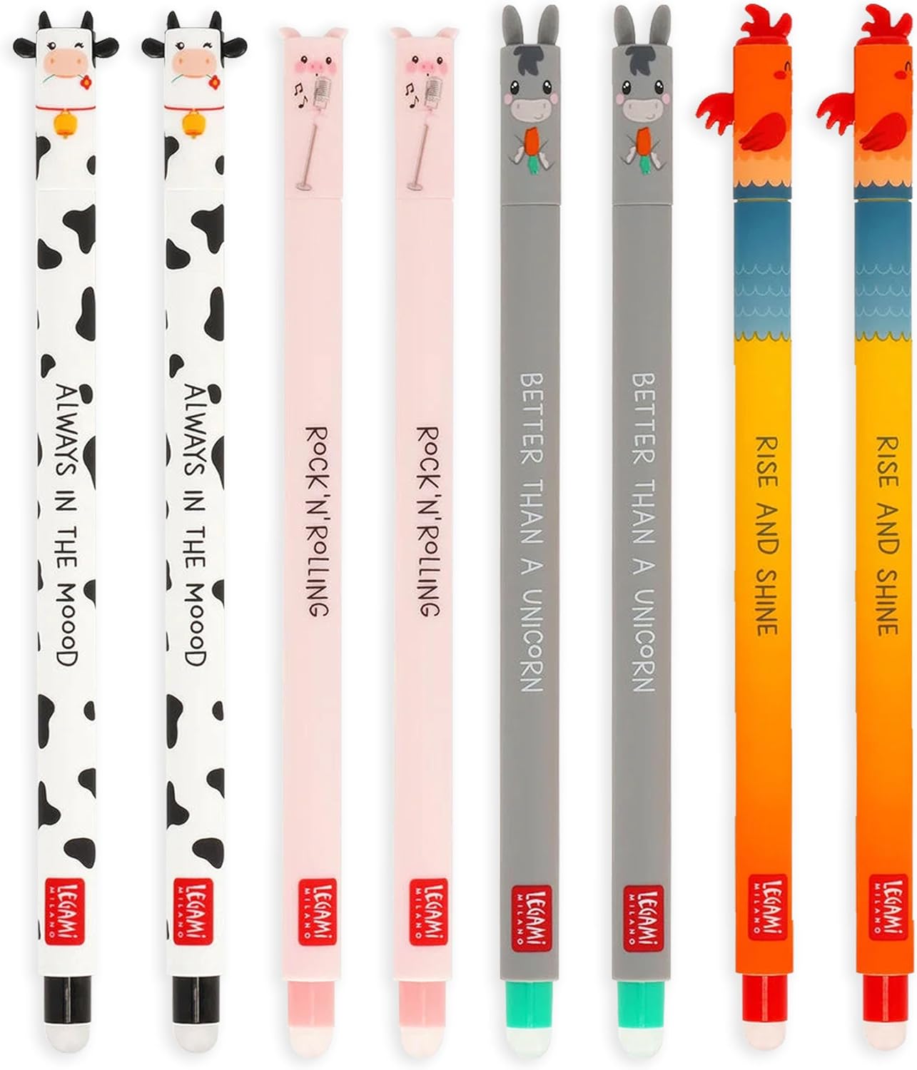 Les stylos LEGAMI Milano gel effaçables Farm Sweet Farm apportent une touche de gaieté et de praticité à votre quotidien. Conçus pour allier fonctionnalité et design ludique, ces stylos sont idéaux pour les étudiants, les professionnels ou toute personne souhaitant écrire avec aisance et corriger ses erreurs sans laisser de traces.