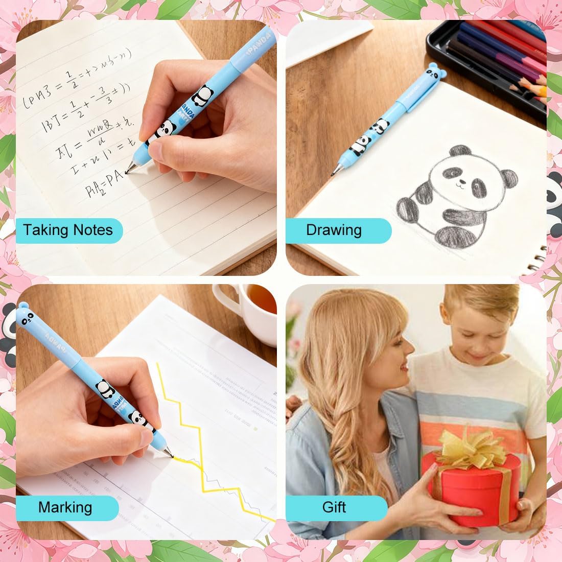 Ce set se distingue par son design ludique qui séduira aussi bien les enfants que les adultes. Les stylos arborent des motifs de pandas charmants et d’autres éléments kawaii, apportant une touche de fantaisie à votre trousse. Que vous soyez un étudiant cherchant à rendre ses notes plus amusantes ou un professionnel souhaitant ajouter une note de personnalité à son bureau, ces stylos sont une solution idéale.