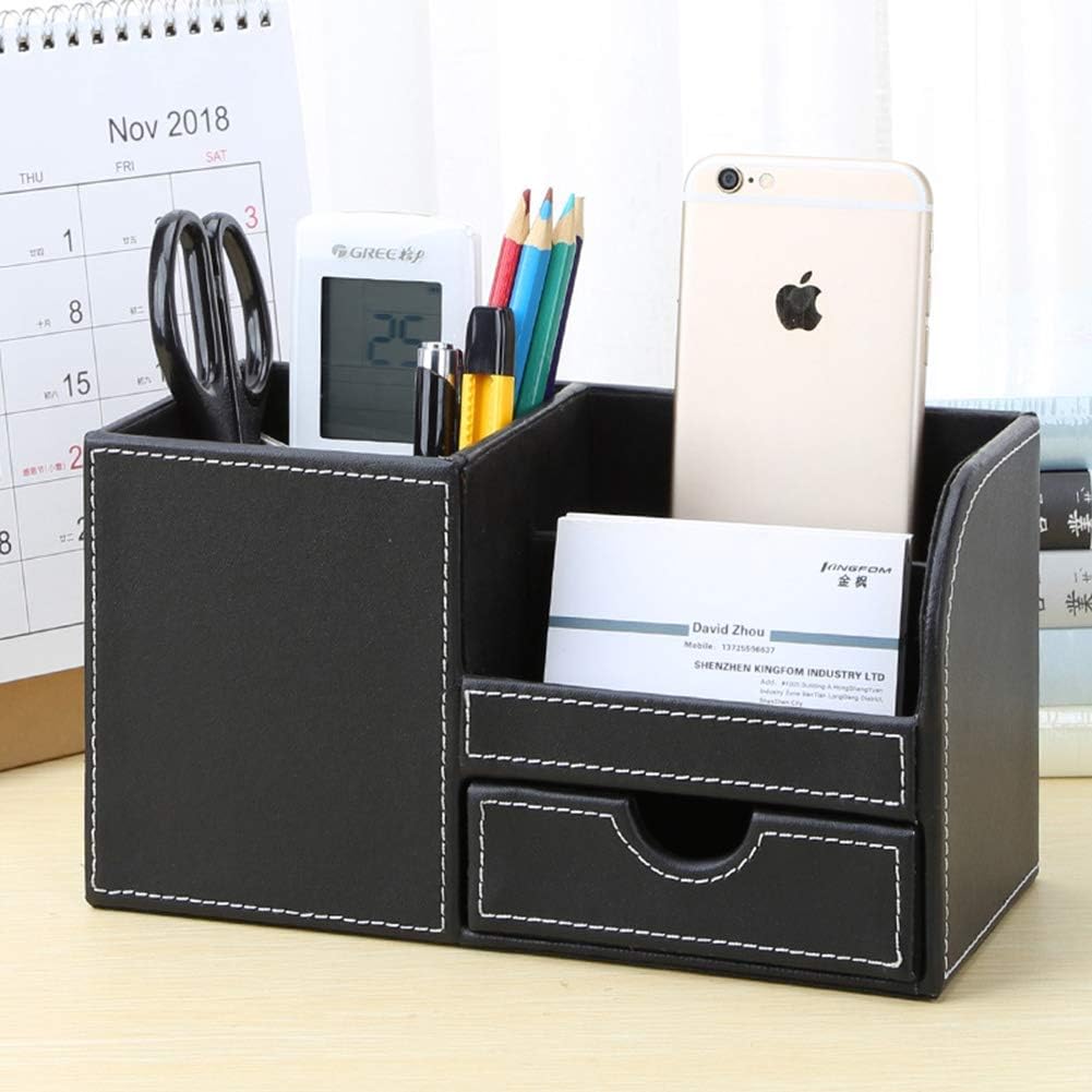 Le KINGFOM 4 Compartiments Multi-fonctionnels Organisateur de Bureau (Noir) est une pièce maîtresse qui transforme l’ordre de votre espace de travail. Fabriqué par KINGFOM, une marque réputée pour ses accessoires de bureau en cuir synthétique de haute qualité, cet organisateur allie élégance et fonctionnalité.