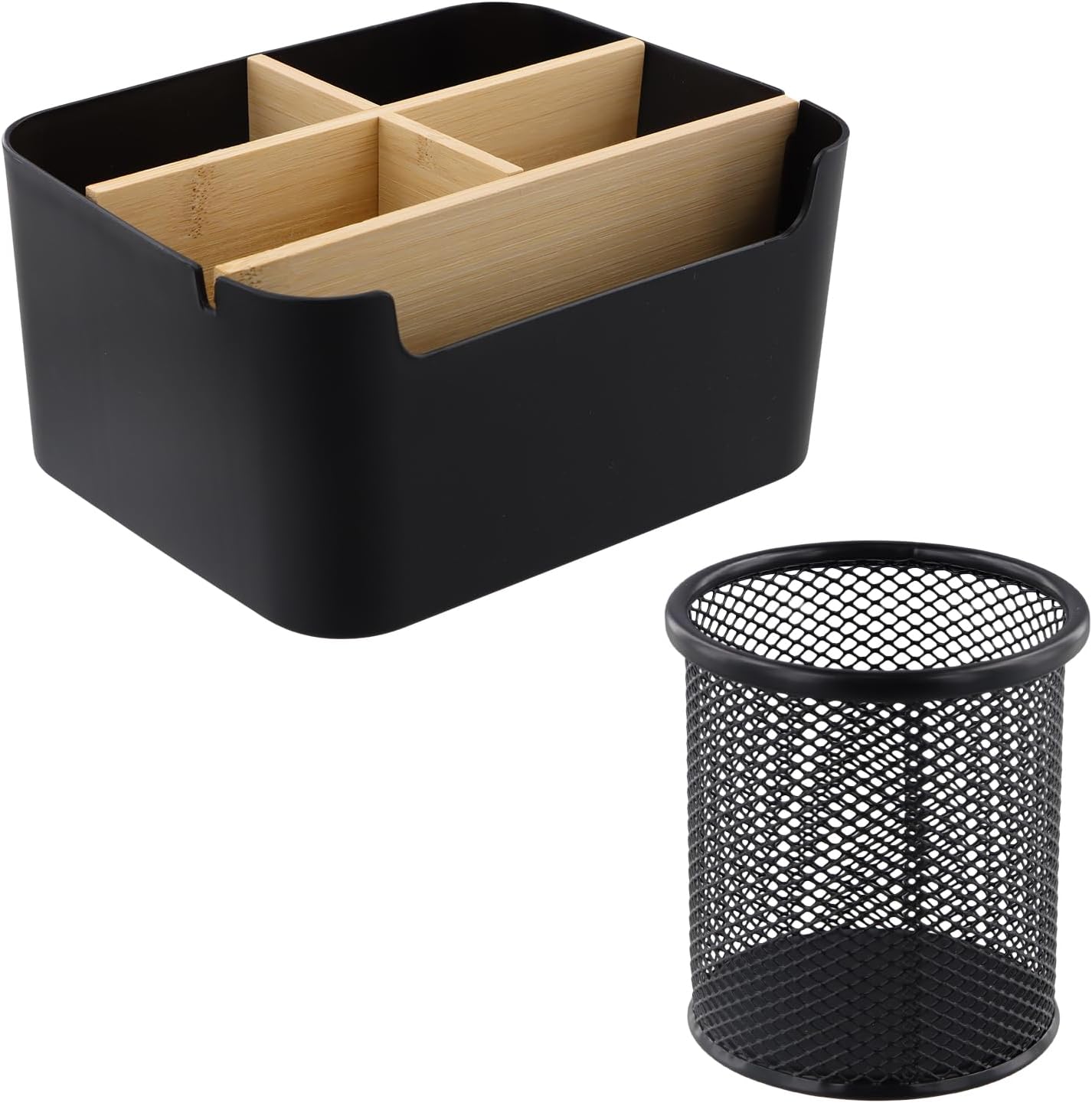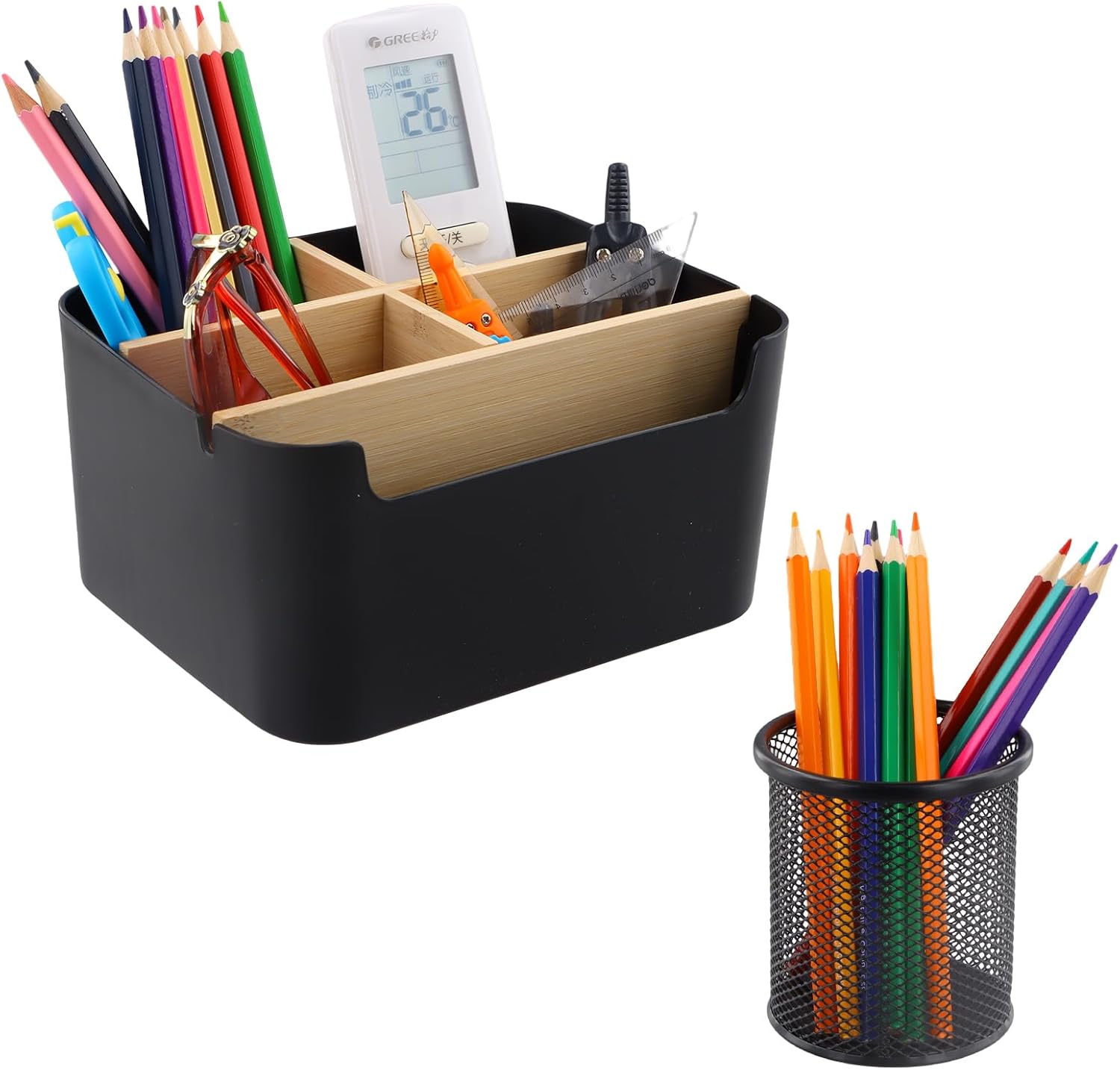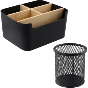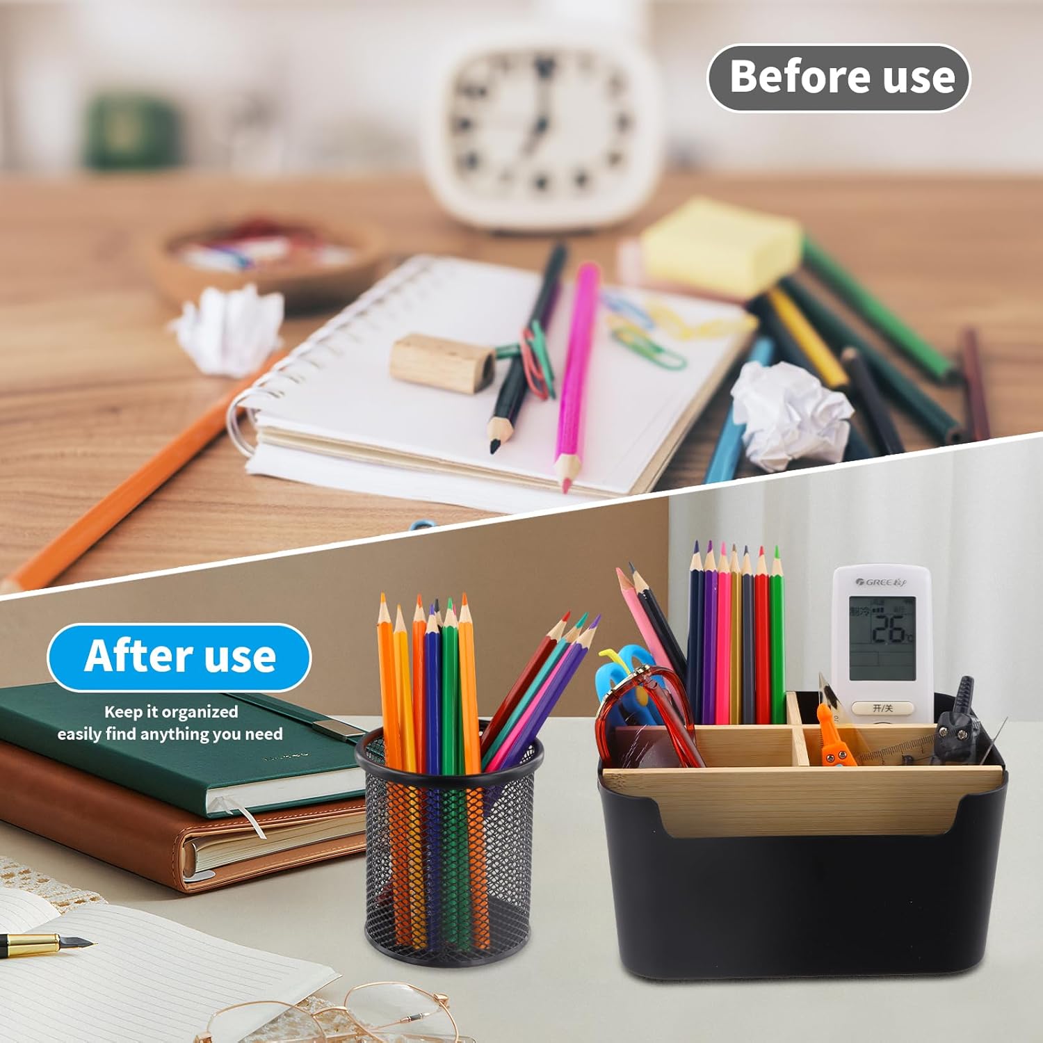 L’organiseur de bureau en bambou et bois offre une solution de rangement élégante et pratique. Sa conception polyvalente permet de ranger non seulement des fournitures de bureau telles que stylos et crayons, mais aussi des télécommandes, des cosmétiques, et bien d’autres petits objets du quotidien. Grâce à son esthétique soignée, il s’intègre facilement dans n’importe quel décor, qu’il s’agisse d’un bureau moderne, d’un espace de travail traditionnel ou même d’une chambre à coucher.
