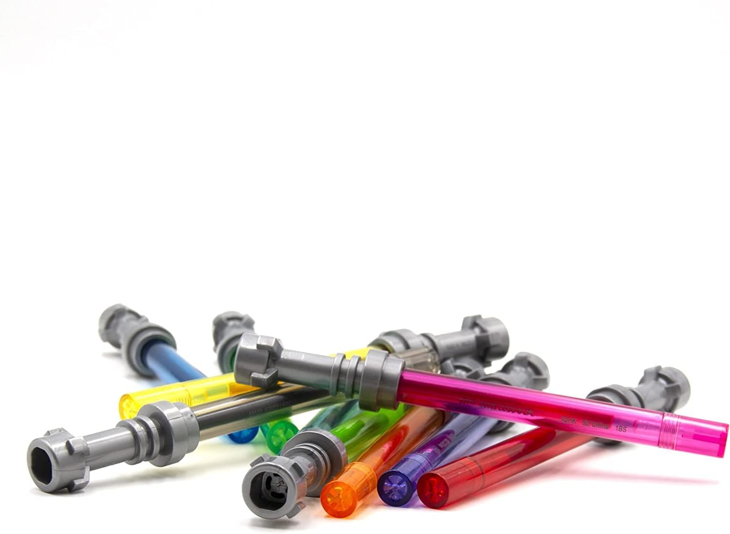 Chaque stylo mesure environ 13,3 cm de long, avec une forme rappelant celle d’un sabre laser. Le capuchon, conçu comme la poignée d’un sabre laser, ajoute une touche authentique à l’ensemble. Les couleurs vives de l’encre – rouge, jaune, vert, bleu, noir, rose, orange, bleu clair, vert clair et violet – correspondent aux teintes emblématiques des sabres laser, permettant aux utilisateurs de choisir la couleur qui correspond à leur humeur ou à leur style.
