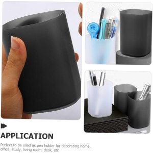 Ce porte-stylo se compose de deux supports individuels, offrant une capacité suffisante pour accueillir une variété de fournitures de bureau telles que des stylos, des crayons, des marqueurs, des pinceaux de maquillage ou même des outils de peinture. Chaque support mesure 10,00 x 7,00 x 7,00 cm, une taille idéale pour s’adapter à différents types d’articles tout en conservant une empreinte au sol réduite. Sa couleur noire élégante s’intègre harmonieusement dans tout environnement de travail, qu’il soit moderne ou traditionnel.