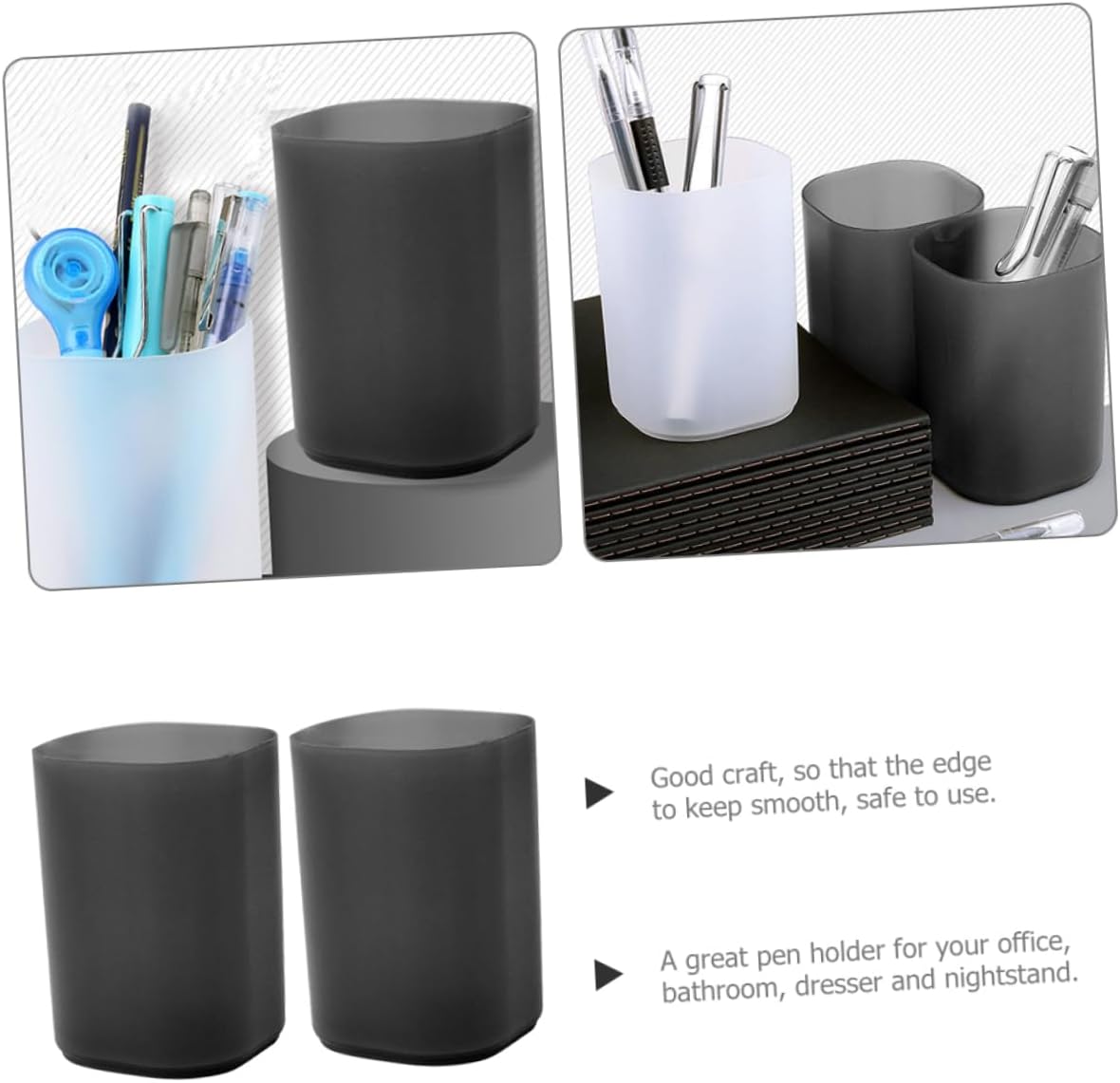 Conçu en plastique de haute qualité, ce porte-stylo offre une excellente résistance aux chocs et aux rayures. Sa finition soignée et ses bords arrondis assurent une prise en main confortable et sécurisée, réduisant le risque de blessures accidentelles. De plus, sa base stable garantit que le support reste en place, même lorsqu’il est chargé de fournitures.