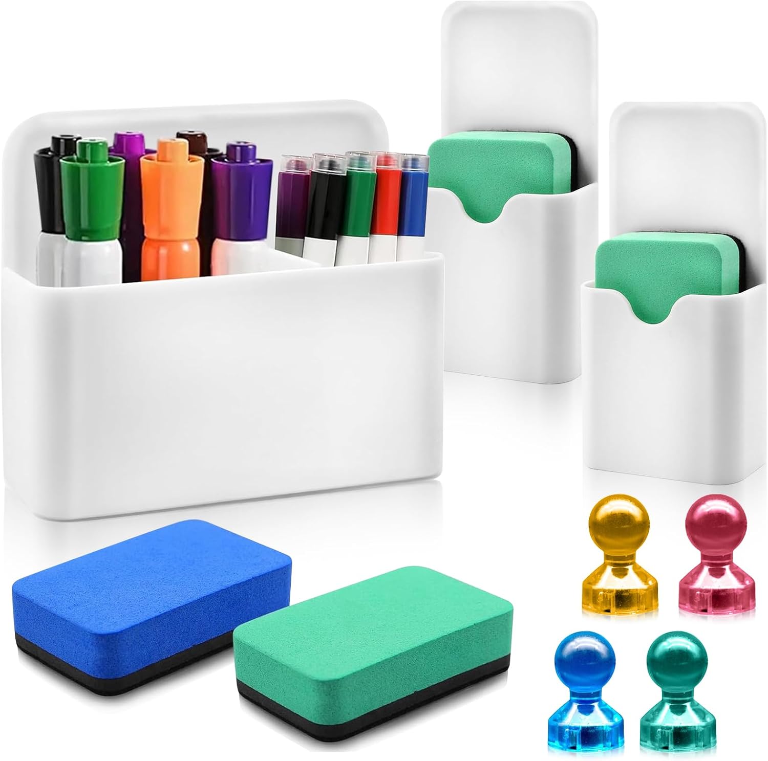 Le kit comprend également deux éponges magnétiques pour tableau et quatre broches, ce qui en fait un ensemble complet qui répond à divers besoins. Les éponges sont idéales pour nettoyer rapidement les tableaux, vous permettant de garder vos notes ou listes bien organisées et faciles à lire. Les broches, quant à elles, offrent une polyvalence supplémentaire pour épingler des notes, cartes ou autres documents importants que vous souhaitez garder en vue.