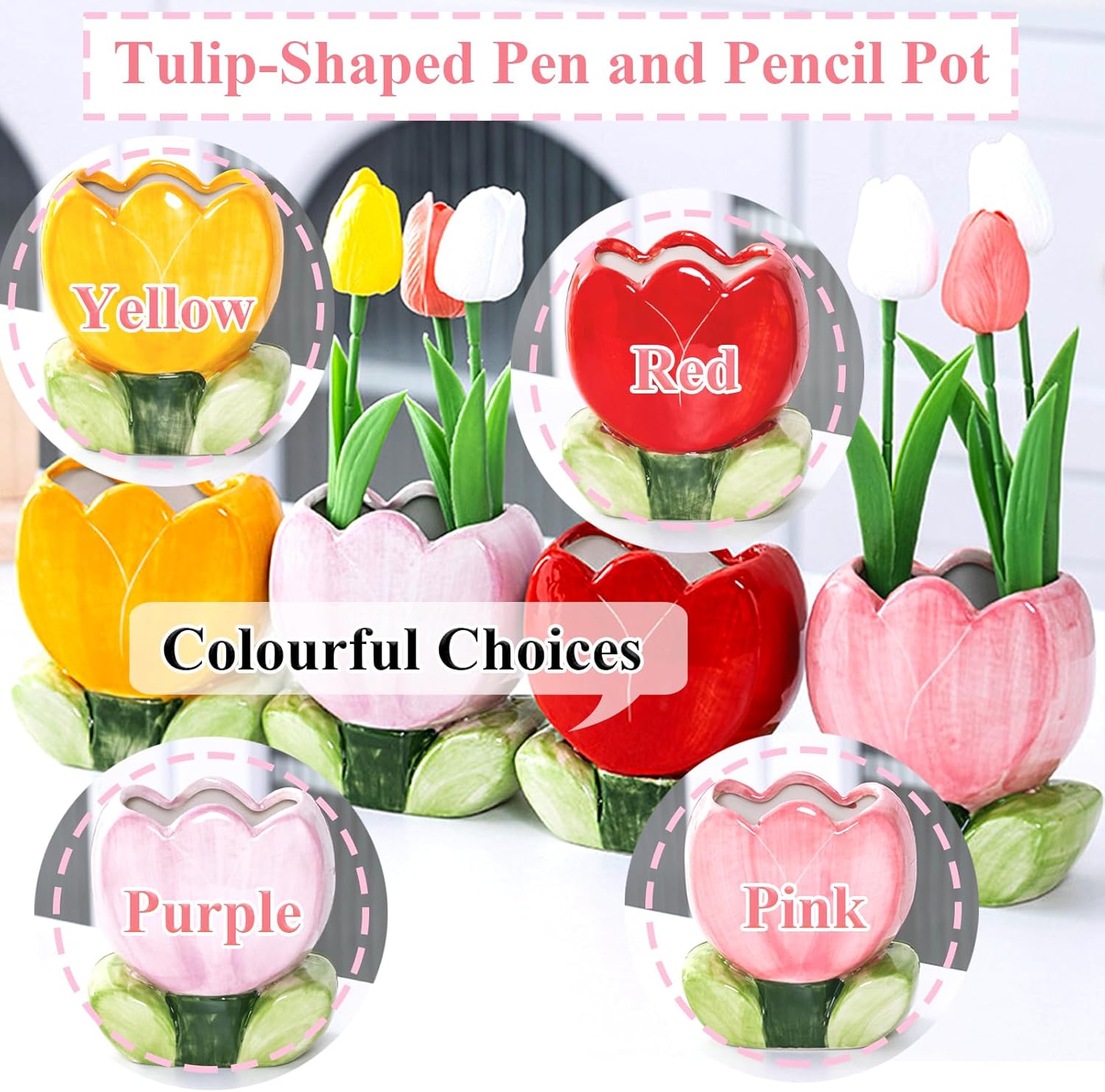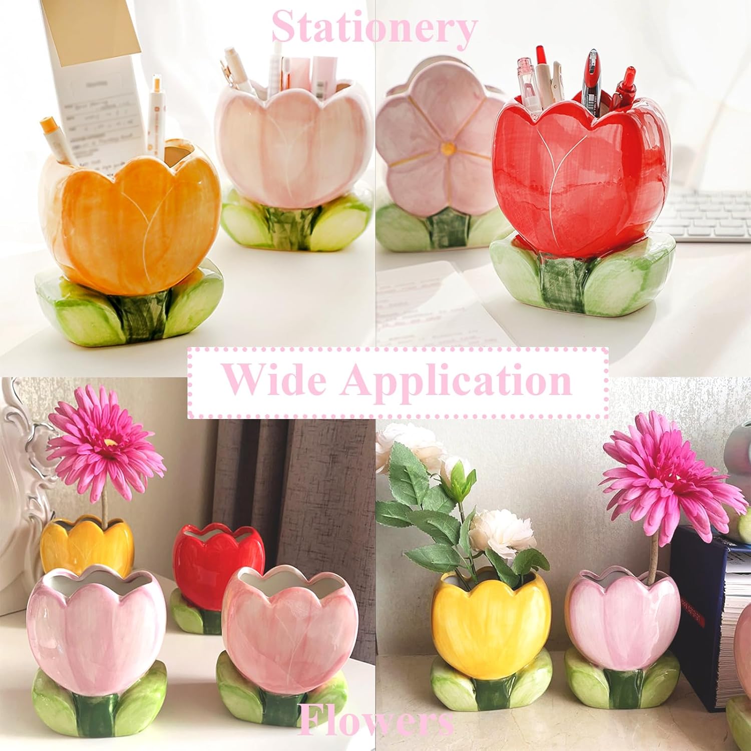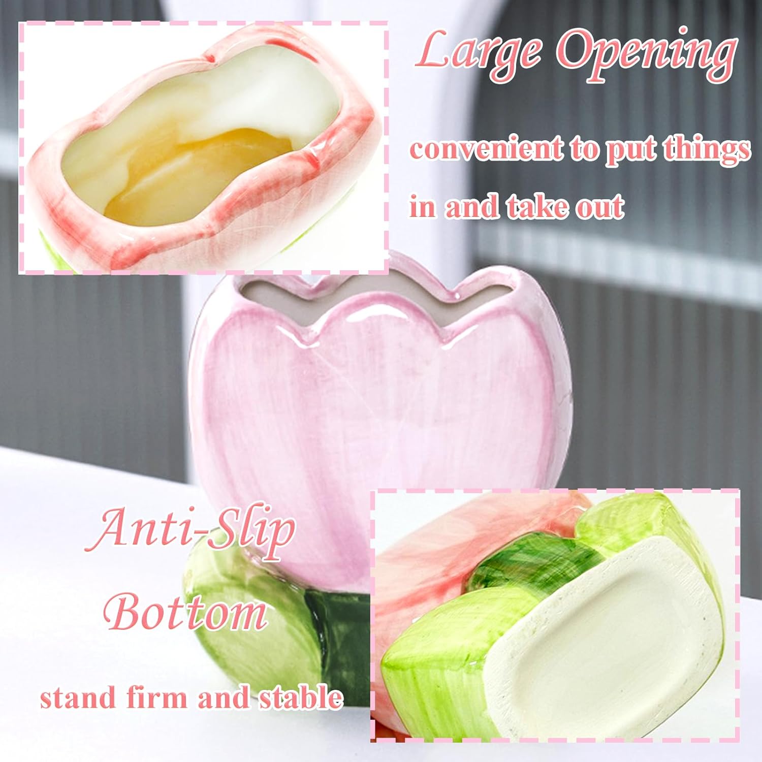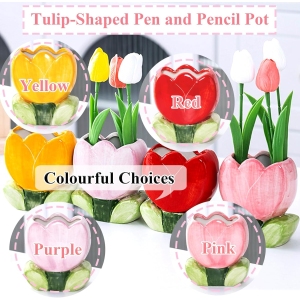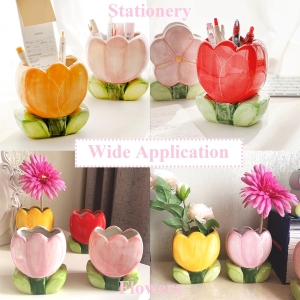 Le charme de ce pot réside dans sa forme délicate de tulipe. Avec ses pétales soigneusement sculptés et sa tige élancée, il évoque une beauté naturelle. Ce pot est légèrement brillant grâce à une glaçure de qualité supérieure, ce qui lui confère une allure attrayante qui capte l’attention. La vaste ouverture permet un accès facile aux crayons, pinceaux de maquillage, et autres accessoires, tout en évitant un encombrement indésirable. Que ce soit dans votre bureau, votre chambre, ou même sur une table d’appoint, il s’intégrera harmonieusement dans divers styles de décoration—qu’ils soient modernes, rustiques ou vintage.