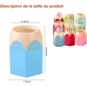 « J’ai acheté ce pot à crayons pour mon bureau à la maison, et je suis ravie de mon choix. Il est non seulement pratique pour organiser mes stylos et crayons, mais son design coloré apporte une touche de gaieté à mon espace de travail. Je le recommande vivement ! »