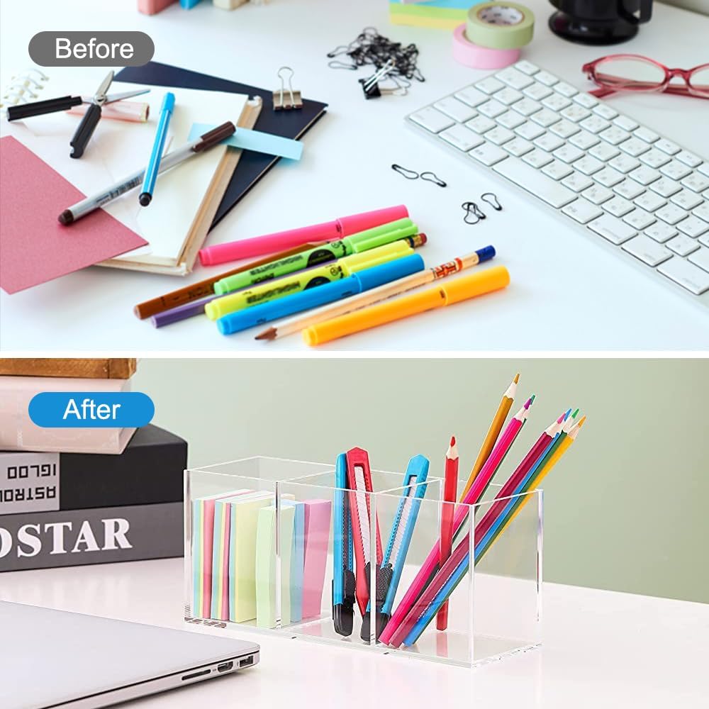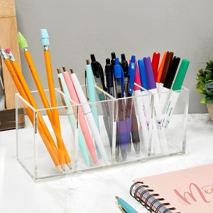 Une des meilleures caractéristiques de ce pot à stylos est son matériau. La fabrication en acrylique garantit que le produit est à la fois léger et robuste. Comparé à d’autres matériaux comme le plastique ou le métal, l’acrylique ne se raye pas facilement et est moins susceptible de se casser. Sa surface lisse et sans bavure assure non seulement une allure soignée mais aussi un nettoyage facile. Un simple coup de chiffon suffit pour maintenir sa transparence et son éclat. De plus, l’acrylique est inodore, ce qui le rend idéal pour une utilisation dans des environnements fermés comme les bureaux ou les salles de classe.