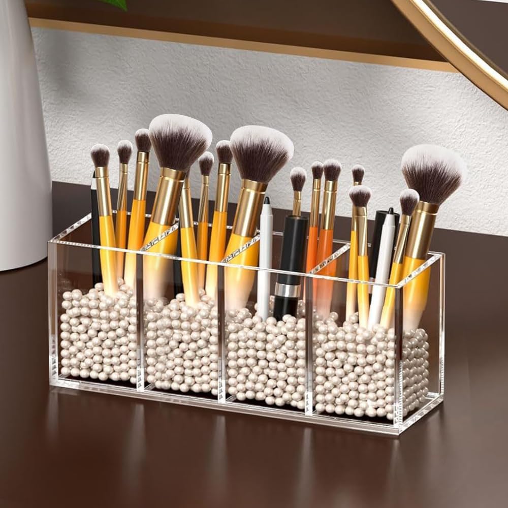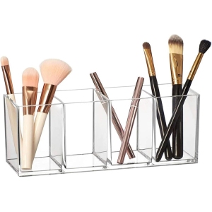 « J’utilise ce pot pour mes outils de maquillage, et je ne pourrais pas être plus satisfaite. Les quatre compartiments m’aident à rester organisée. »