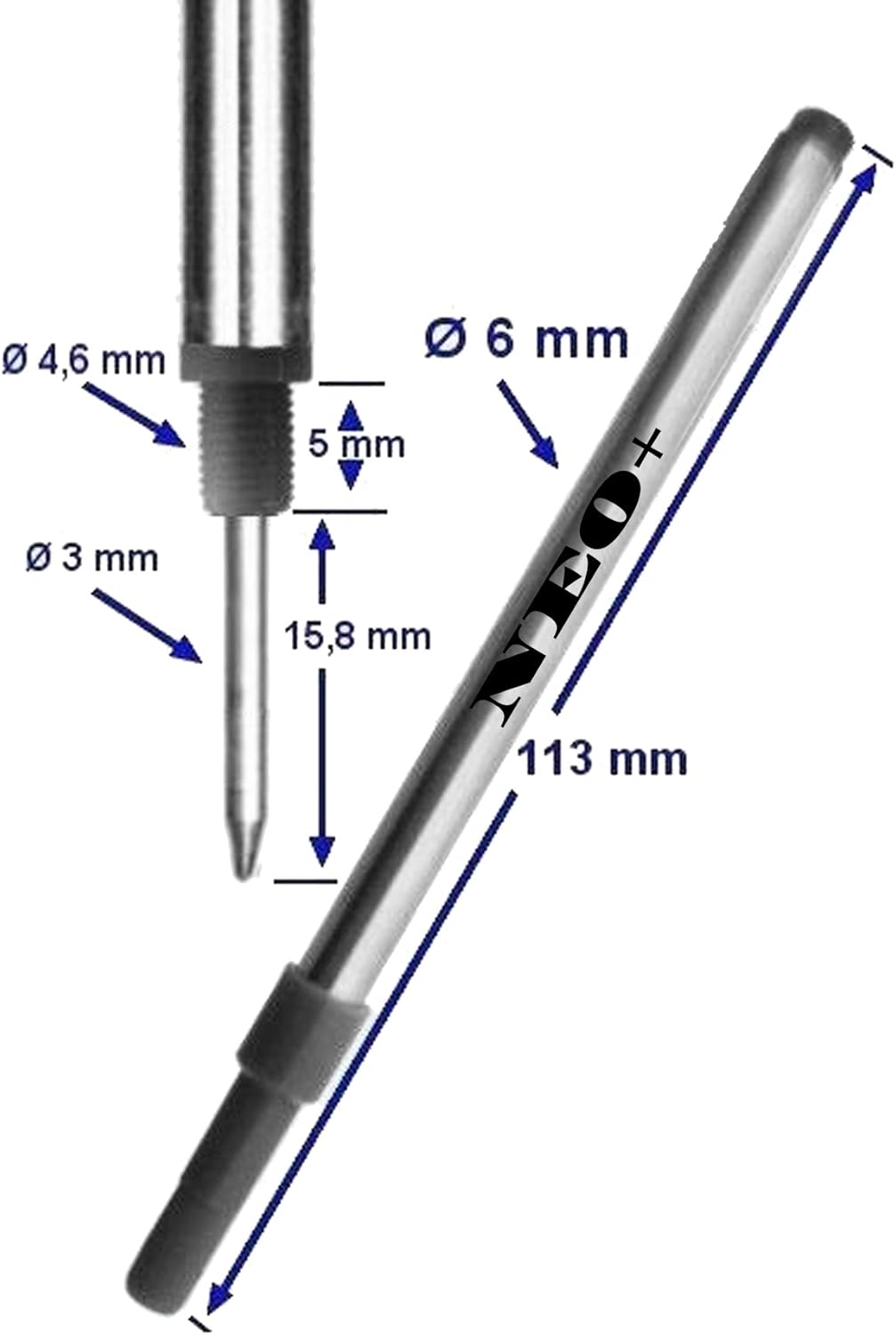 Les recharges NEO+ ont une pointe de 0.5 mm, idéale pour une écriture précise.