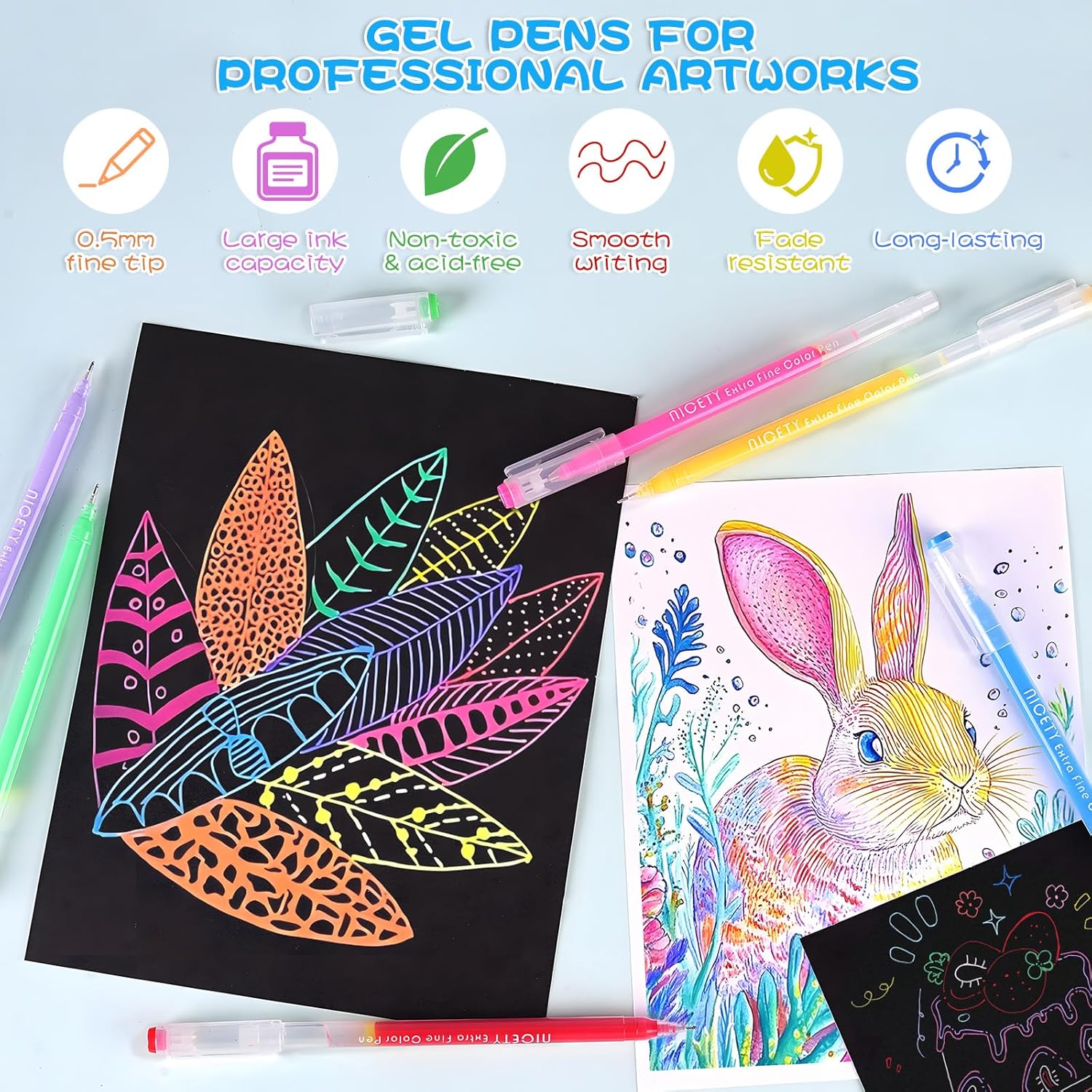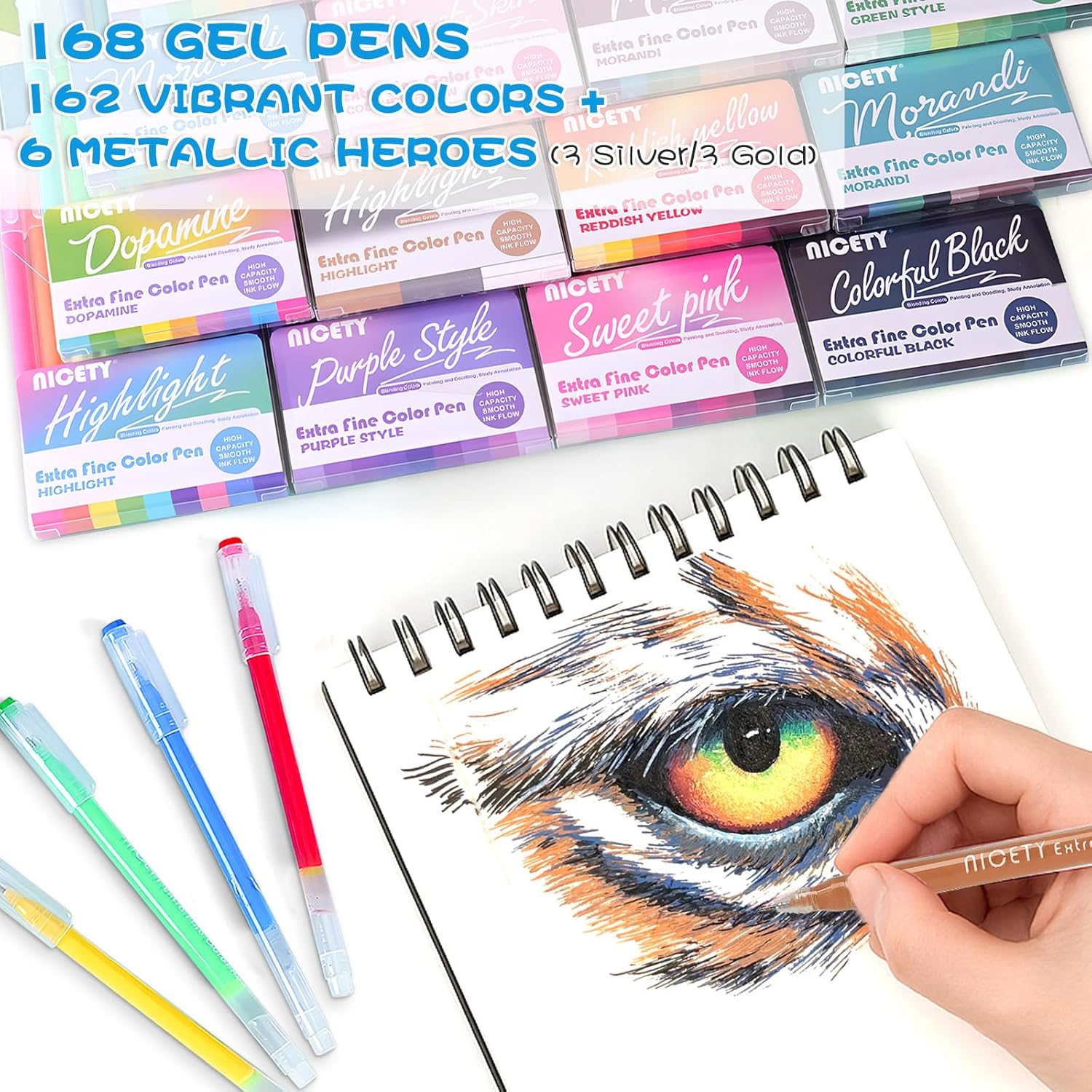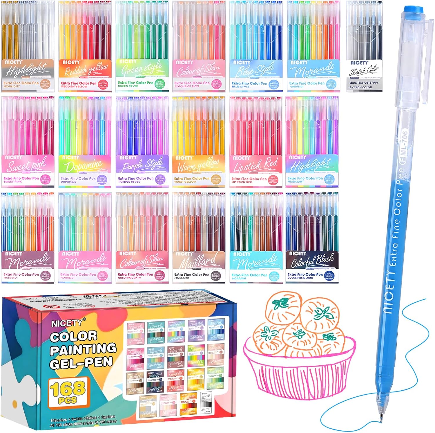 En conclusion, la gamme de stylos gel NICETY, avec ses 168 couleurs variées, ses performances et sa facilité d’utilisation, s’est démarquée sur le marché des produits similaires. Les skotts concurrents se trouvent souvent limités, que ce soit par le nombre de couleurs ou leur qualité d’encre. Ce set est non seulement un excellent choix pour les novices, mais il répond également aux besoins des artistes plus expérimentés.