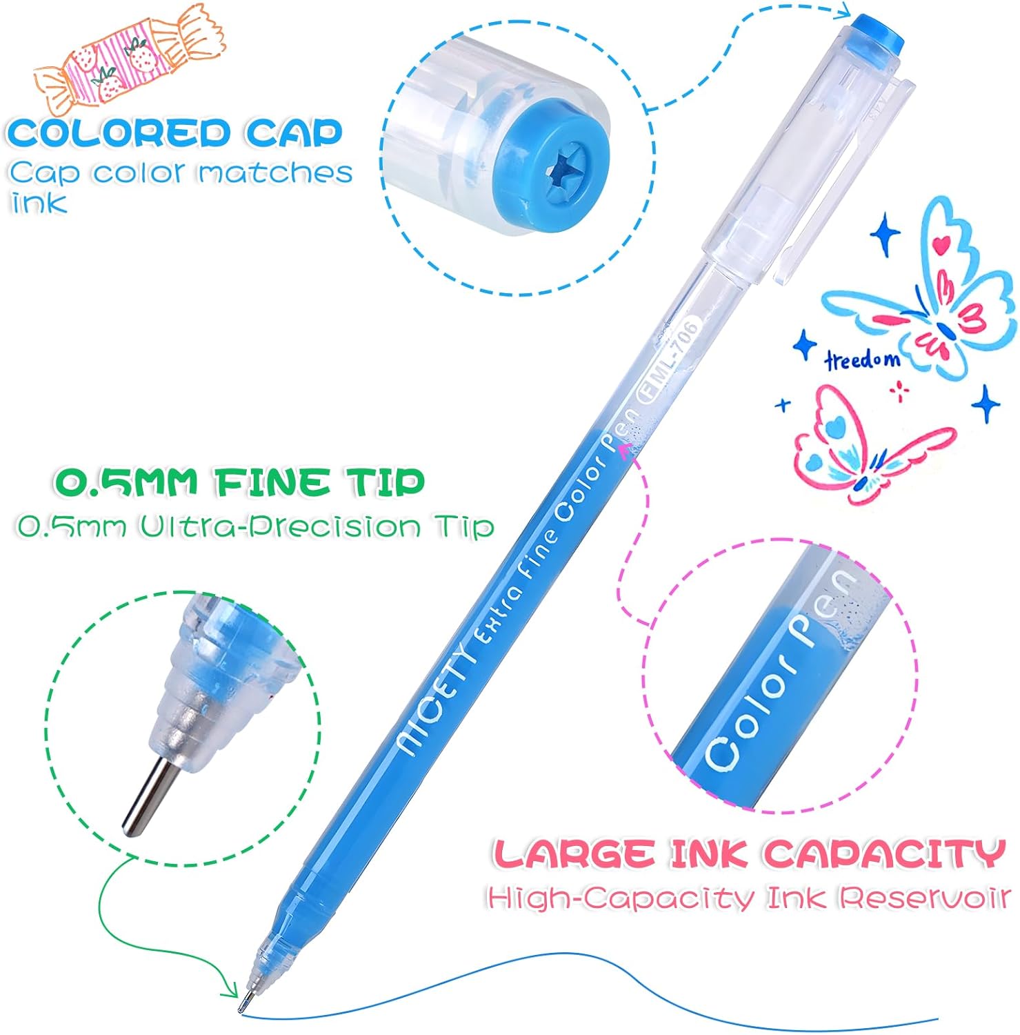 Les stylos gel NICETY sont conçus pour être aussi pratiques que performants. Les capuchons codés par couleur simplifient le repérage des teintes, parfait pour éviter toute frustration lors de la recherche de la nuance désirée. En outre, la formule non toxique de cette encre assure que le produit est approprié pour tous, y compris les enfants et les étudiants, sans compromettre la sécurité pendant l’utilisation.