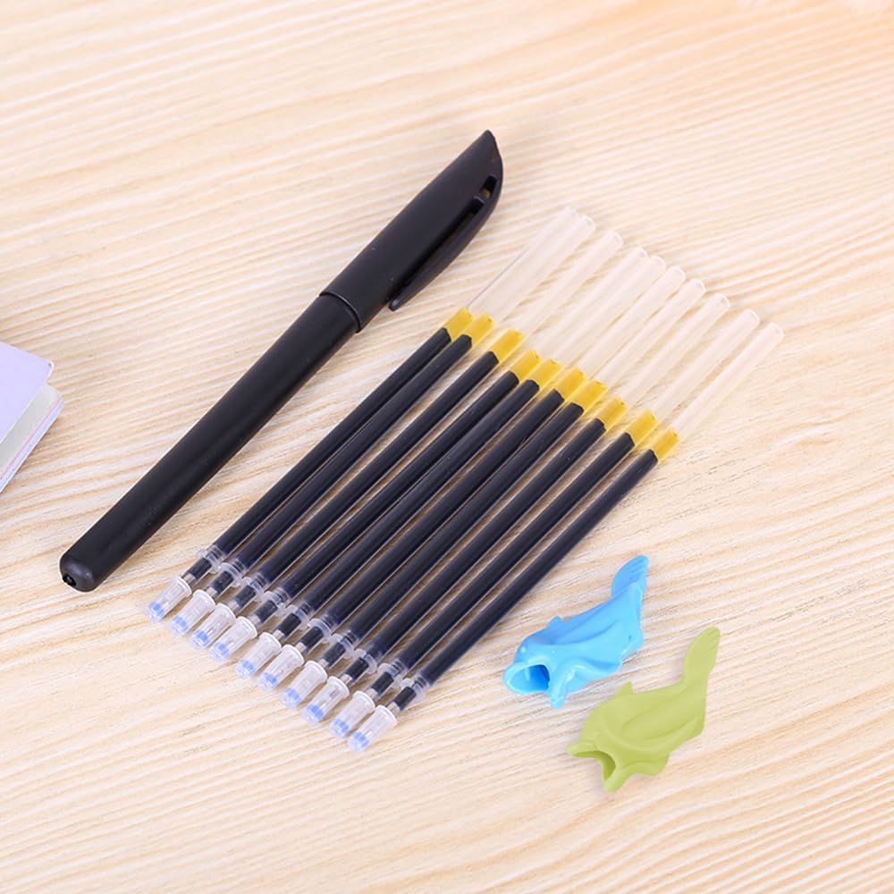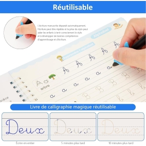 Le set comprend 2 stylos magiques, 10 recharges, ainsi que 2 correcteurs de posture pour les doigts. Chaque élément a été pensé pour répondre aux besoins quotidiens des utilisateurs, qu’il s’agisse de faire des exercices de calligraphie ou de simplement écrire en classe. Les poignées en silicone ajoutent une touche de confort, permettant une prise en main agréable et naturelle. Les enfants pourront ainsi s’adapter plus facilement à l’écriture sur le long terme.