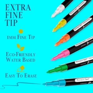 Les utilisateurs des feutres Pinturale Arts apprécient particulièrement la précision offerte par la pointe extra fine de 1 mm, idéale pour les travaux détaillés. La facilité d’effacement sur des surfaces non poreuses est également un point fort, permettant de modifier ou de renouveler les créations sans effort. De plus, l’encre à base d’eau et non toxique est un atout majeur pour les familles et les environnements éducatifs.