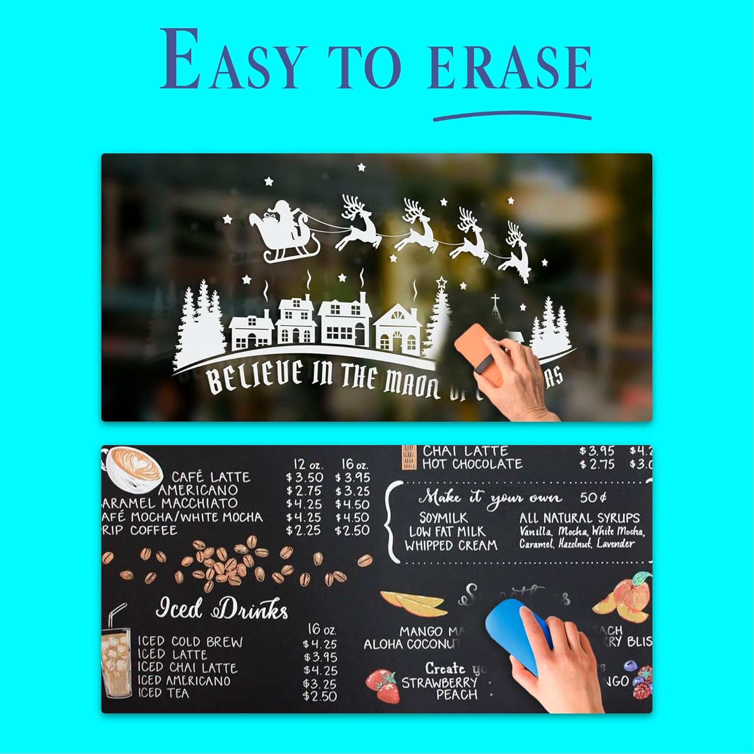L’encre utilisée dans ces feutres est spécialement conçue pour s’effacer facilement sur des surfaces non poreuses comme le verre, les fenêtres ou les tableaux noirs. Il suffit d’un chiffon humide pour éliminer les traces sans laisser de résidus ni de bavures. Cette facilité d’effacement permet de modifier ou de renouveler vos créations en toute simplicité, offrant une flexibilité maximale dans vos projets.