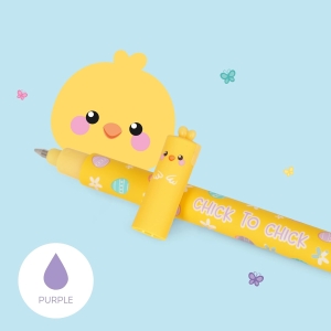 Jolies stylos en thème de Pâques. Couleur violet et rose avec encre effaçable.