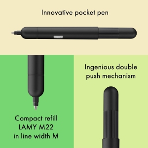 Le LAMY Pico Black utilise un mécanisme à double pression : une simple pression du doigt sur le stylo le transforme d’un format compact à un stylo à bille de taille standard, prêt à l’emploi.