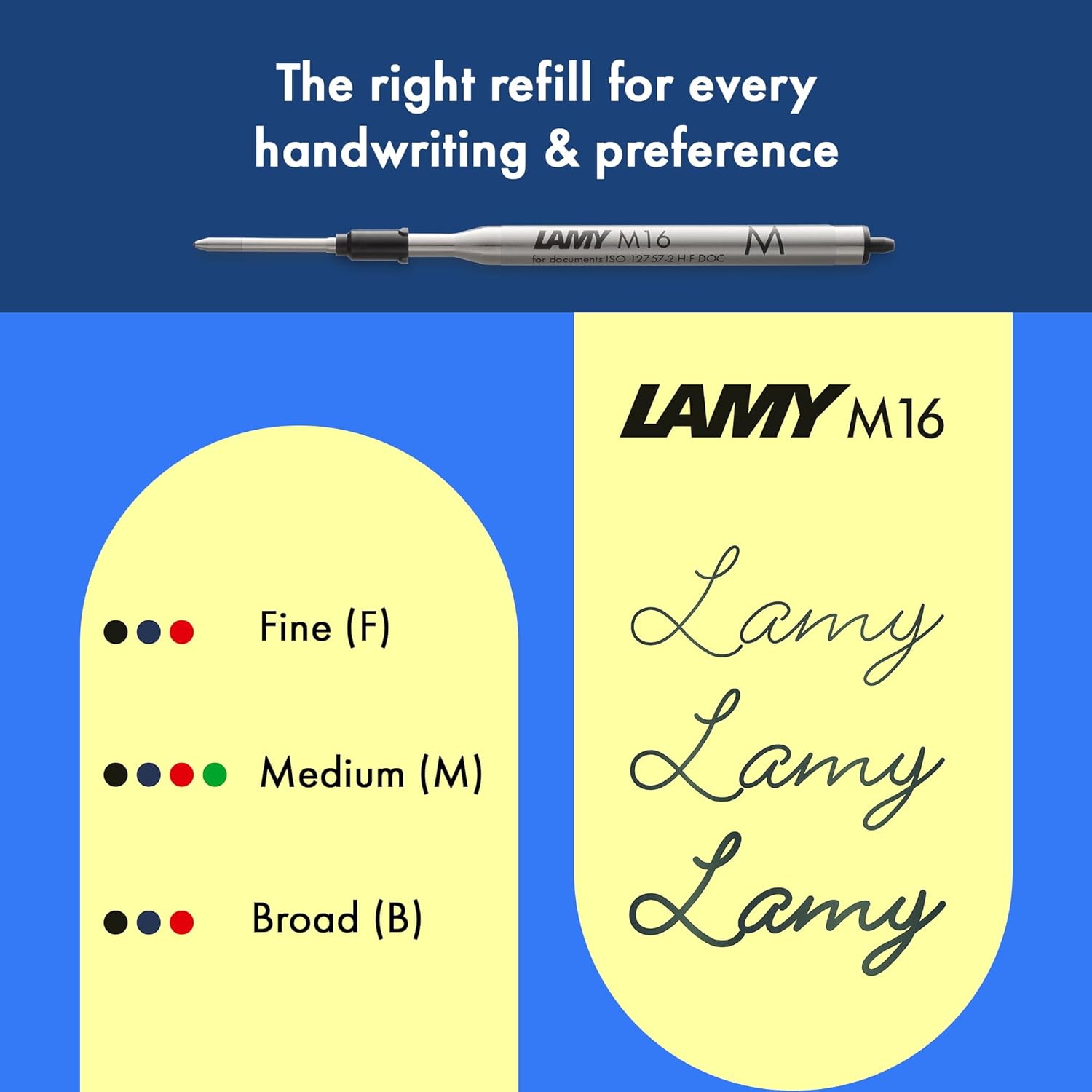 Le Lamy Safari est prévu pour être utilisé avec les recharges M 16, mais d’autres recharges compatibles peuvent également être utilisées.