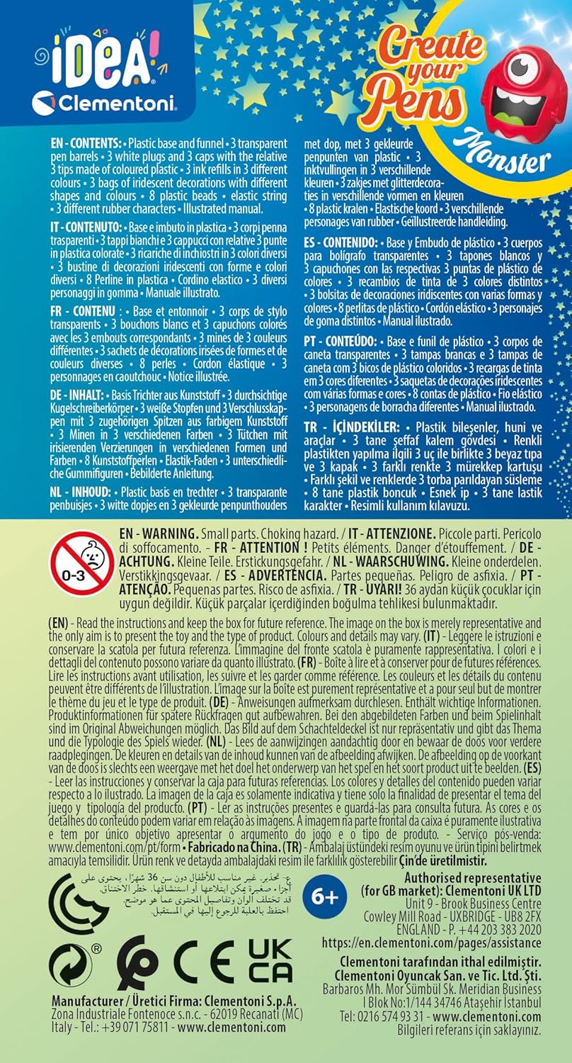 Le Clementoni – Idée – Create Your Penso : Monster se distingue par plusieurs éléments. D’une part, le choix des thèmes permet de capter l’attention des enfants, les monstres étant des personnages fascinants qui stimulent l’imagination. Par ailleurs, la qualité des matériaux et des accessoires inclus sont pensés pour garantir une expérience agréable et durable. Les crayons aux motifs colorés ne manqueront pas de séduire les plus jeunes, tout en s’intégrant parfaitement dans l’univers ludique proposé par le kit.
